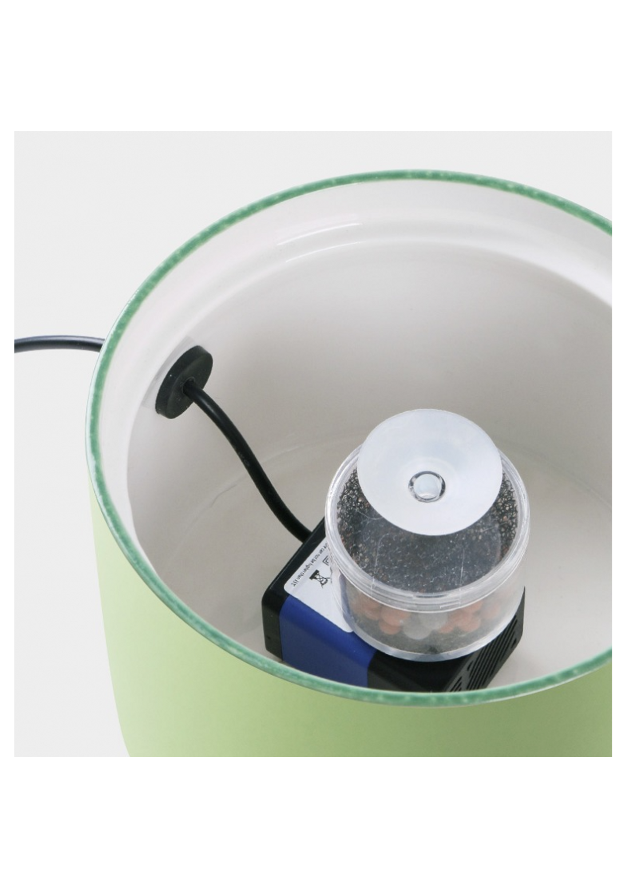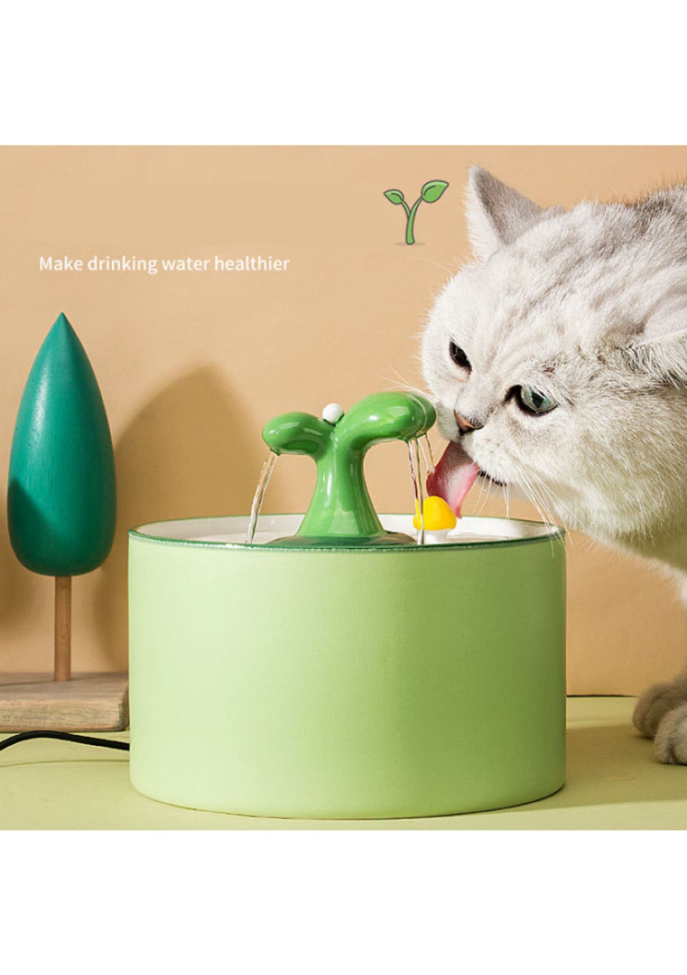 【Reliable Filtration System】Unlike still water in a bowl, fresh flowing water in a fountain is more appealing for picky cats. Water Fountains with charcoal filters help soften hard tap water, rid the water of unpleasant smells, and catch any hair that falls in.【1L Litre Water Capacity】Large water capacity reduces the need of refilling, great for pet parent who is always away for a weekend. Easy to assemble and disassemble for cleaning. We suggest change the water regularly to ensure a clean, healthy water supply for your lovely pets!【Quiet water pump design】 With the designed water pump, can circulate running water, make the water quality more healthy. With the upgrade super quiet pump, you can hardly hear the sound of the water, which will not affect you and your pet.【Super Quiet】Our Pet drinking fountain with 3W low power consumption, energy saving and environmental friendly. And it’s super quiet with 25 decibels. Just enjoy the sound of water flowing.【Safe ceramic material】 Made of high quality ceramic material, sturdy, durable and long service life. Made of non-toxic material, it can be used safely.Specification:Product dimensions: 14x19cmPackage size: 20x20x18cmWeight: 1.1kgMaterial: CeramicColour: GreenCapacity: 1LPower supply: USB cable(1.2M)