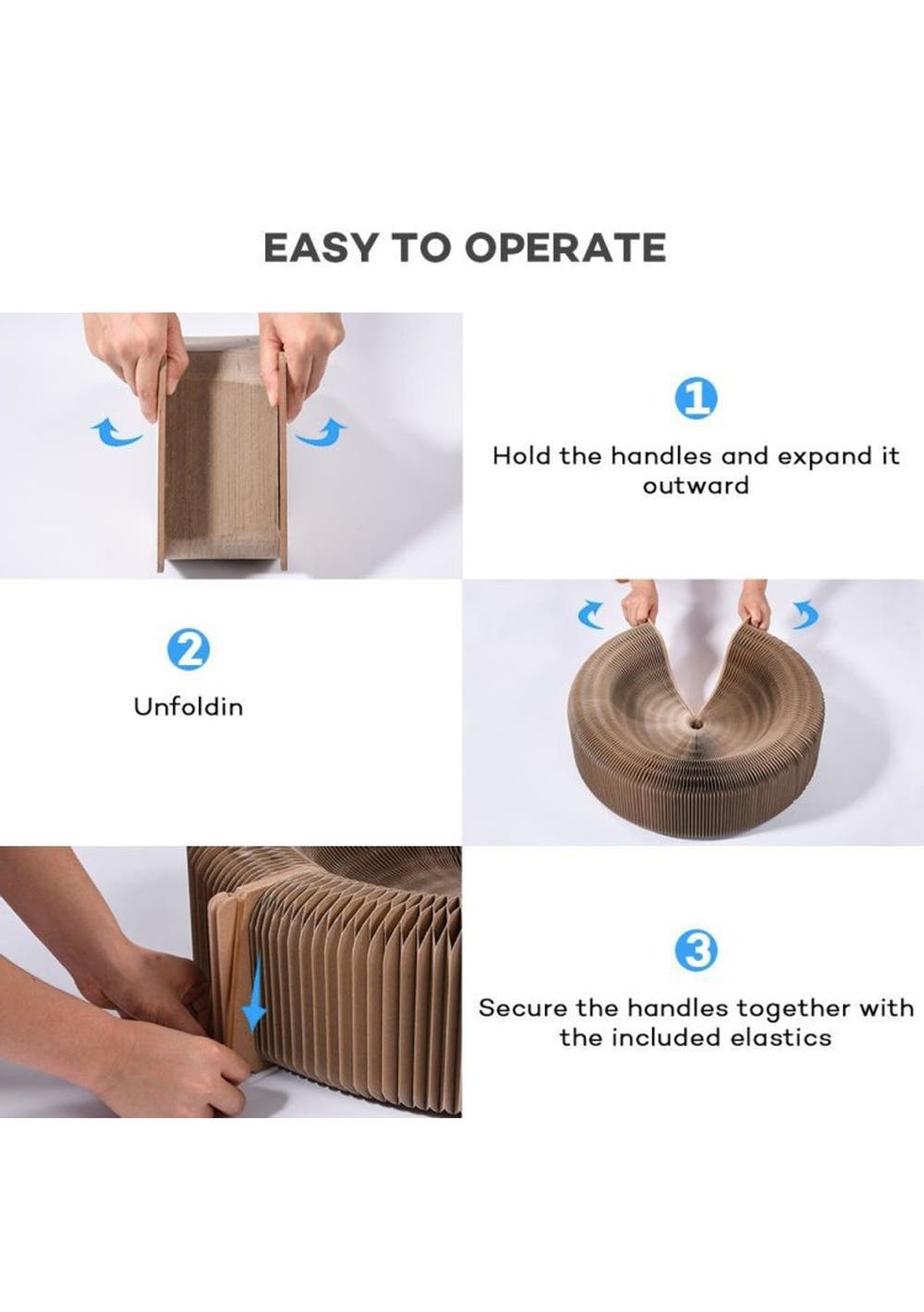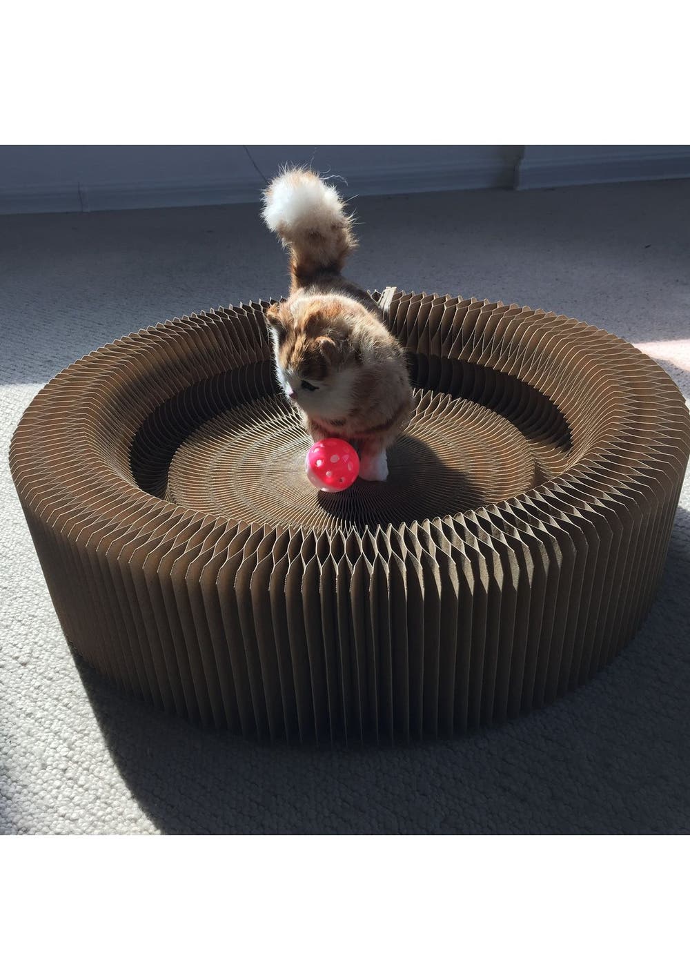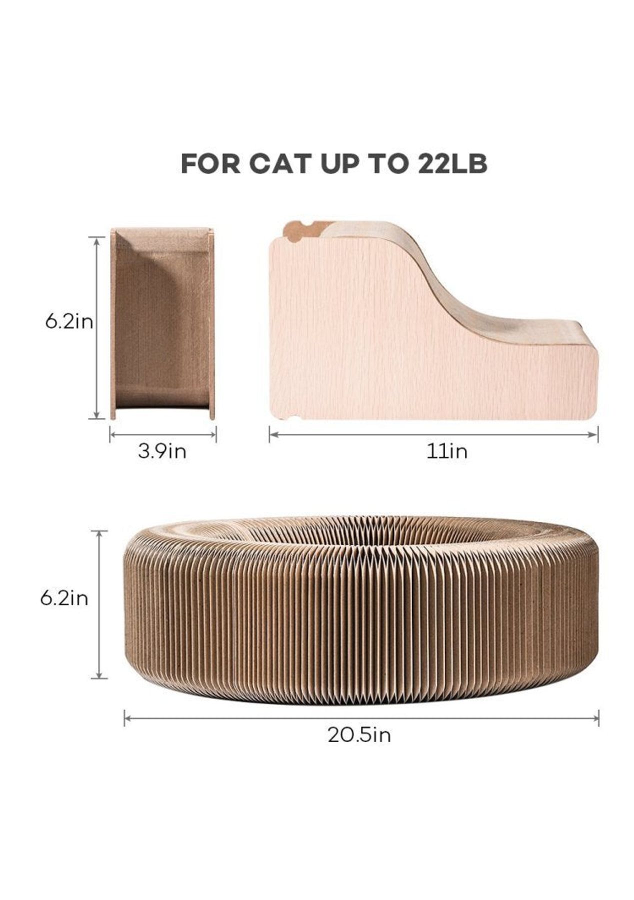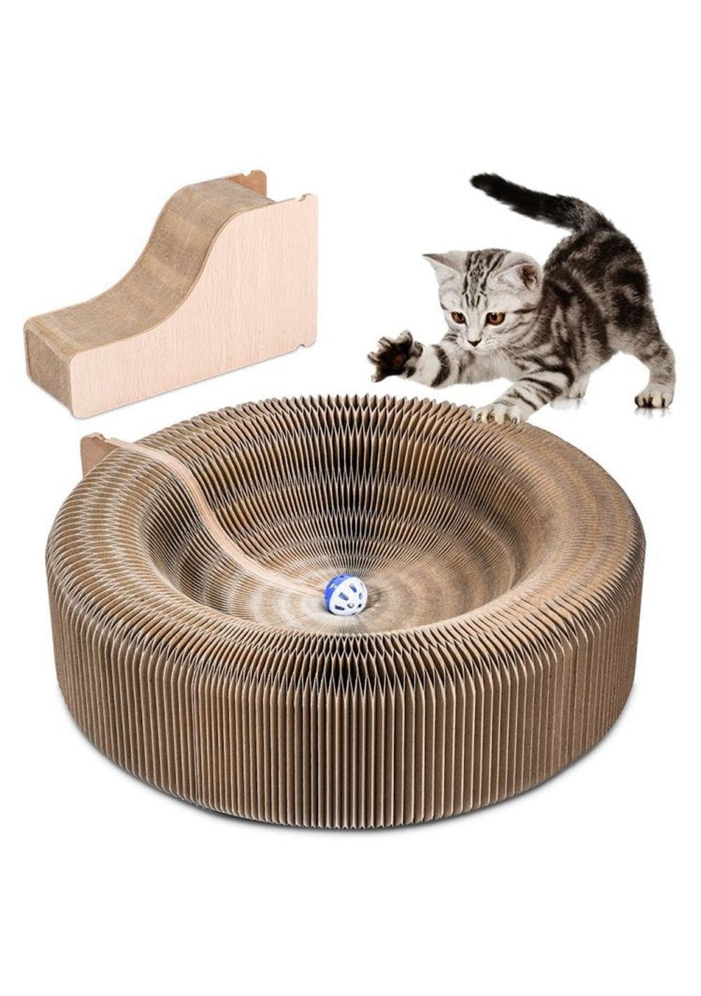 - Scratching Board & Lounge Bed: This cat scratcher cardboard is an ideal place for cats to rest and play, which is not only multifunctional for claw scratching but also a comfortable lounge cats beds.- Large Size & Bearing Capacity: Opening Dimension: 52(diameter) x 15.75 (height) cm, Weight Capacity: 12Kg. Available for big or little cats. Recommended for one big cat or two kittens playing or sleeping in this cat scratching pad.- Portable & Collapsible: You don’t need any tool to assemble and dismantle. Folding back after expanding, saves you space to a great extent. Air can flow directly through high-density cardboard, reducing dust and dirt accumulated on the surface. Convenient for home or trip.- Protecting Furniture: Cats like to scratch paper cardboard, thus expensive furniture including sofas, carpets, curtains, etc. is protected from the claws of the cat.- MULTI-FUNCTIONAL: Scratcher --Satisfy your cat's natural scratching instincts while reducing the risk of cat scratching on your carpets and furniture. Lounge-- Bowl shape contours your cat's body, and offers your cat a comfortable place to rest- High Quality: It is made of 100% environmentally friendly non-toxic materials. Therefore, this cat scratching post seems light and durable and will bring you a very simple user experience.Specifications:Size: 52(diameter) x 15.75 (height) cmWeight Capacity: 12KgMaterial: Paper, plasticPackage includes:1 x Cat scratcher lounge Bed1 x ball