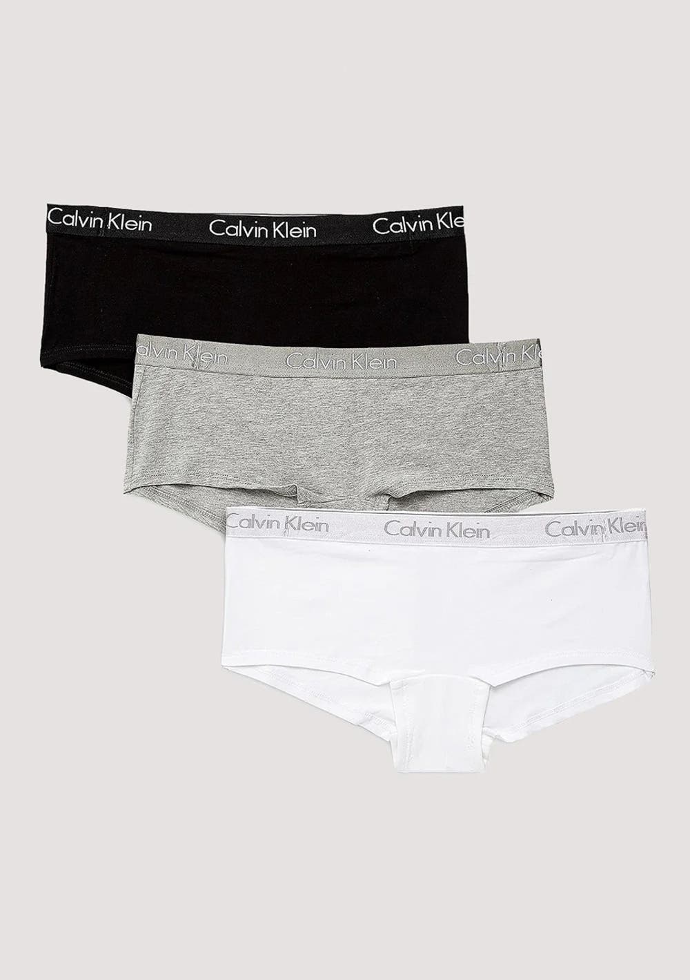 Calvin Klein - Womens Motive Cotton Boy Leg Brief 3 Pack Black/ White/ Grey