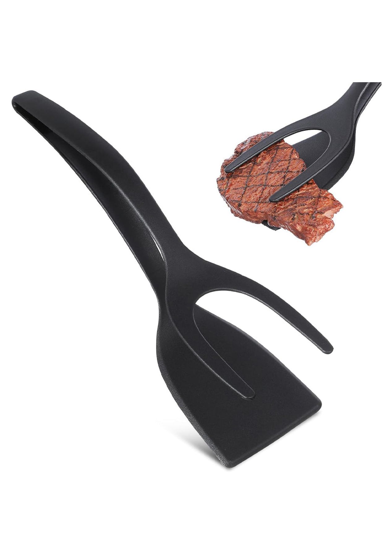 Product Description: A kitchen tongs, which easy to handle the grab, flip & scrap, no more switch between several cooking utensils, one hand easy.Its 2-in-1 design combine a spatula and a tong. This combination allows you to easily grip and flip your food with a single tool, making your cooking experience more enjoyable and convenient.The spatula is made of nontoxic and safe material nylon. This material is known for its high temperature resistance, ensuring that it can withstand the heat of cooking without melting or releasing harmful substances.The handle is fully covered by frosted silicone, anti-hot, non-slip, easy to clip. Housewives, barbecue lovers and chefs will love it.With a length of 12 inches, the spatula is a reasonable size for dining and cooking needs. The 3-inch width of the tong provides enough space to handle a variety of foods, making it suitable for flipping and turning them during cooking.Slotted clamp drains excess grease back into the pan to make food more healthy. It can be a good turner spatula and strong enough to grip, turn, grill the fish, beefsteak, burgers, eggs, filets, and meat pancake and more.Warm tip: Please don't put the silicone kitchen tongs on open flames.?Product Specification:Color: Black, Grey, RedMaterial: Silica GelWeight: 130gSize: 30.7 x 7.9 cmFunction: 2-in-1 Grip and Flip Spatula Tongs?Package Inclusion:1 x Spatula Tongs