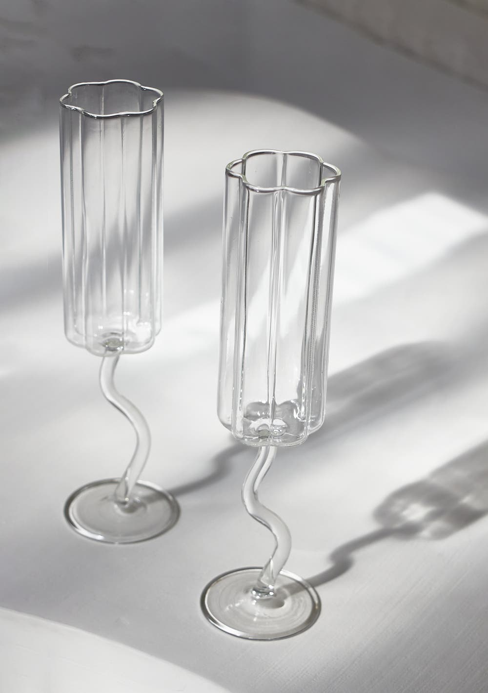 Introducing to our George Collective Wavy Glassware range the Champagne Flute Set of 2, this quirky and unique design is sure to make your party even more special!