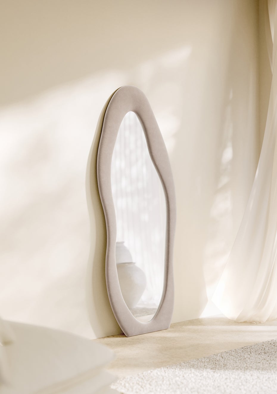Our George Collective brand is a contemporary and premium range for the home. Introducing the Standing Organic Mirror, featuring an irregular design on this full-length mirror adding personality to your space. Upholstered in luxe fabric, add character to your room by choosing from the many colours available. Simply lean the mirror at a slight angle against the wall and you room will be instantly transformed! Product Details Dimensions: 170cm x 70cm Weight: 17.8kg Material: Mirrored glass, Medium density fibreboard (MDF), polyester fabric. Suitable for indoor use only. Warning: Fragile, handle with care.