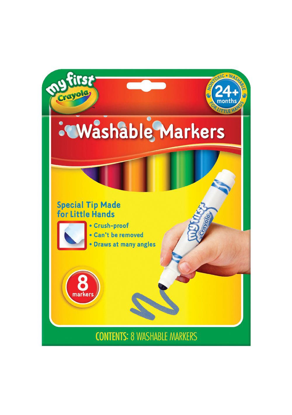 My First Washable Round Nib Markers are worry-free coloring fun. The traditional round shape provides a transition to a mature writing grip. Secure tip can't be crushed or removed by little fingers and rounded to makes colorful strokes at any angle. Easy clean up with just soap & water