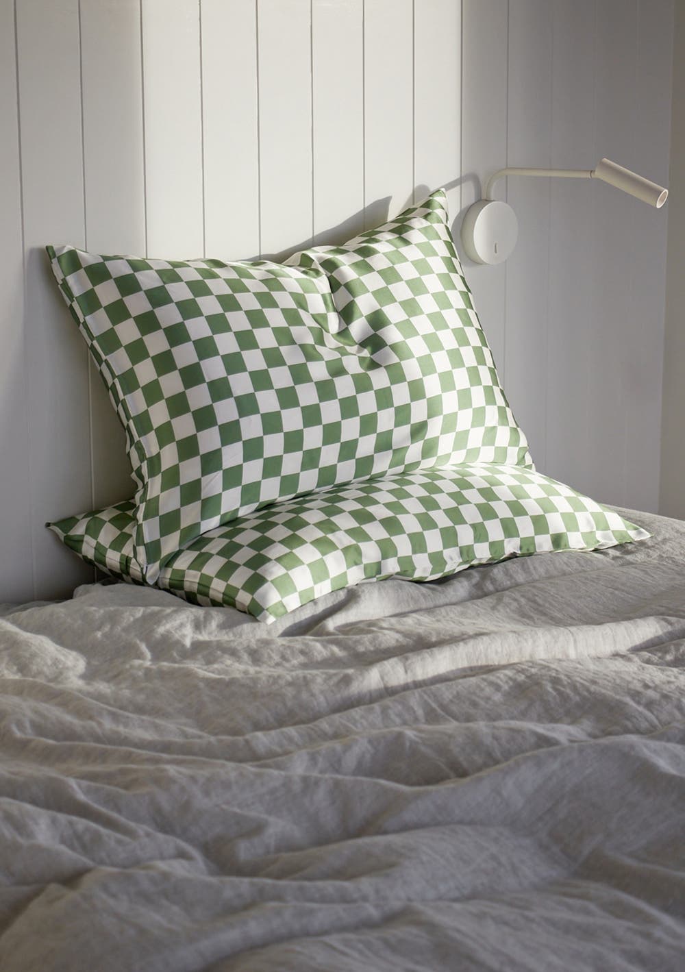 Slumber - 100% Silk Pillowcase Pair - Matcha Checker