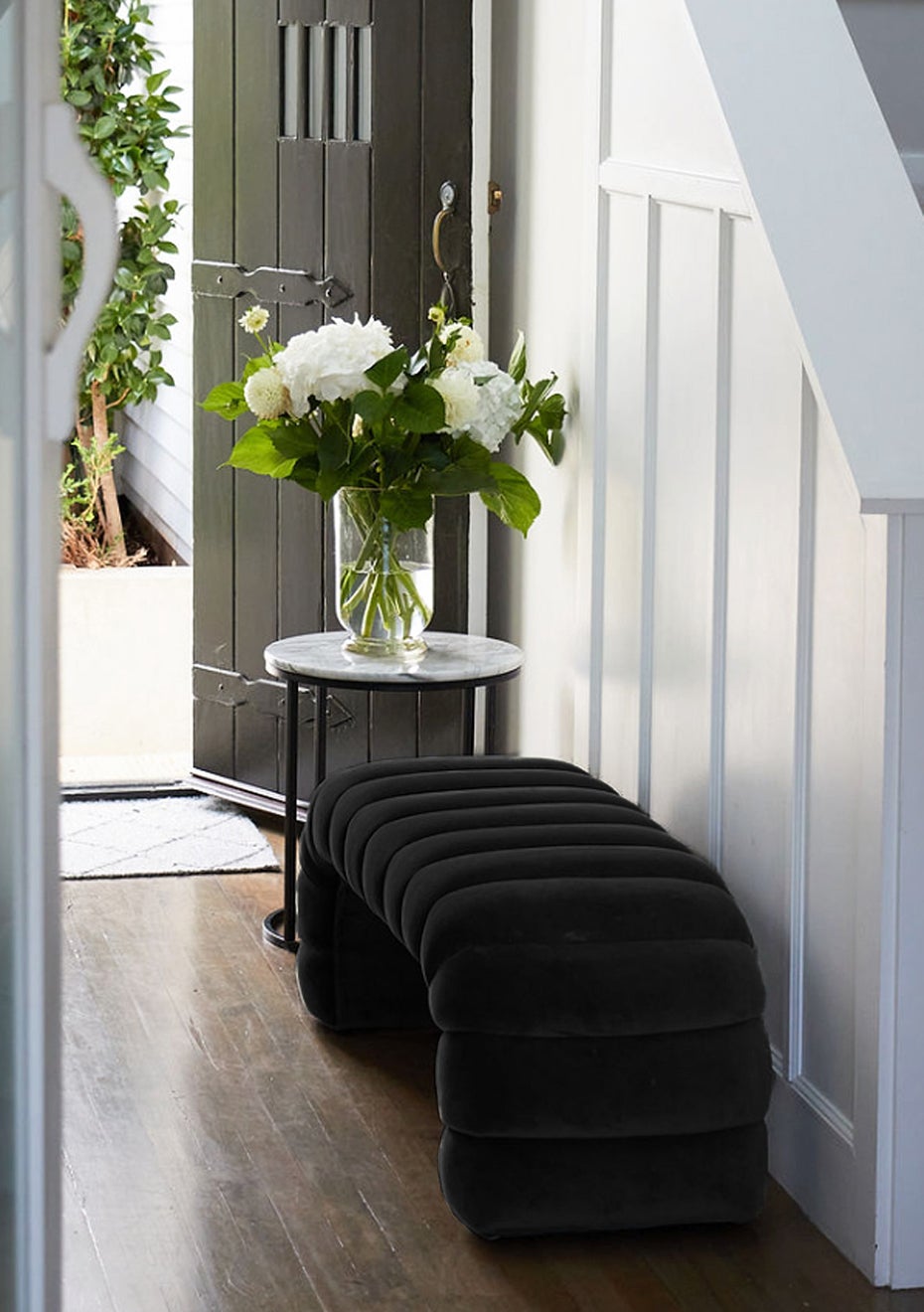 Upholstered in our favourite textural velvet fabric, this Channel Curve Bench will be a favourite for years to come.