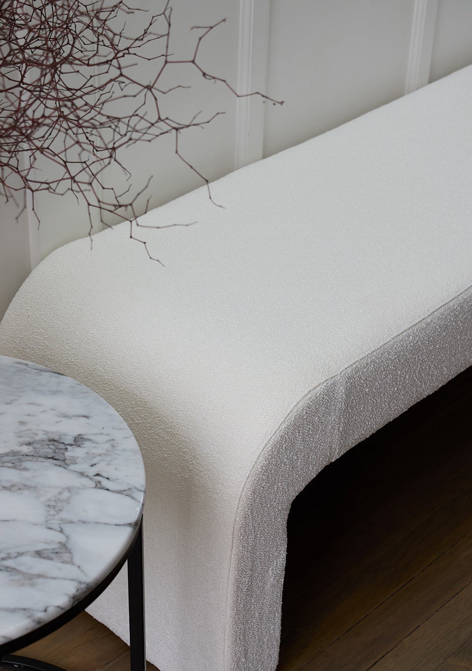Designed Exclusively for Onceit, our George Collective brand is a contemporary and premium range for the home. Sitting just got a whole lot more interesting. Meet the George Collective Curved Bench, your new favourite spot to lounge, relax, and (let’s be honest) strike a pose. With its elegant, swooping design, this bench isn’t just for sitting—it’s for flourishing. It’s the furniture equivalent of a red carpet entrance, with a shape so smooth, you’ll wonder why all benches aren’t this stylish. Whether you’re using it to pull on your shoes, daydream with a book, or simply add a touch of flair to your space, this bench does it all with a wink and a nod. Upholstered from high-quality fabric and designed to fit effortlessly into any space, this bench is as practical as it is stylish. Plus, it’s versatile—whether you're hosting a party or just binge-watching your favorite show, it’ll look fab wherever it sits. This textural boucle fabric will make a statement sitting pretty in an entrance way or at the end of a bed. Style her with our curved boucle headboard for the ultimate on-trend bedroom setup! Product Dimensions: Length: 150cm Height: 48cm Seat Depth: 45cm Packaged Dimensions: 151cm x 46cm x 50cm Packaged Weight: 22.2kg Cover: 100% Polyester Boucle Filing: Foam Frame: MDF