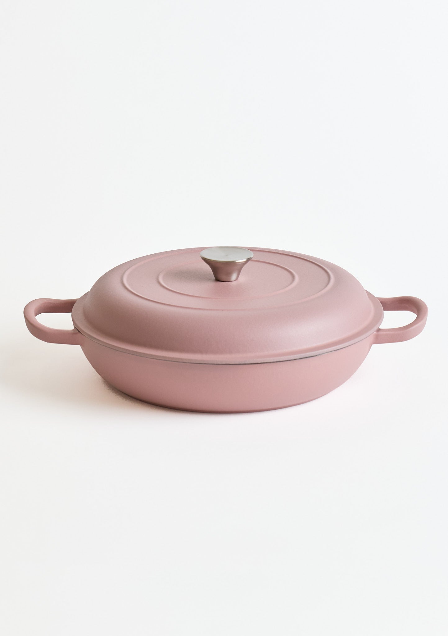 Designed Exclusively for Onceit, our George Collective brand is a contemporary and premium range for the home. Elevate your culinary creations with the George Collective Cast Iron Range, where timeless craftsmanship meets modern innovation. Designed for the discerning chef and home cook alike, this luxurious cooking range offers unparalleled performance and sophistication for your kitchen. Made for gas, electric, ceramic, and induction cooktops. Oven safe up to 500°F/260°C. Material: Cast Iron with Enamel Coating Measurements: D:30.00cmx H:6.5CM Weight: 12.5kg Before first use, wash with warm soapy water and immediately hand dry thoroughly. Do not use abrasive cleaners, steel wool or scouring powder. Hand-wash to preserve cast iron cookware. Always allow your cookware to cool down before washing and never boil dry.