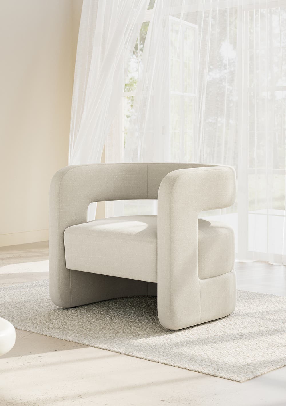 Designed Exclusively for Onceit, our George Collective brand is a contemporary and premium range for the home. Introducing the Curve Chair - a modern looking design crafted for both comfort and style, this chair is sure to add a touch of elegance to your home. Make a bold statement with this textural piece featuring an unique silhouette that feels slightly vintage and totally high-end. This is a must have furniture piece this season! Key Features: - Elegant Shade: The timeless colour shade effortlessly complements various interior styles. Experience luxury and elegance combined. - Effortless Elegance: Redefine your living space effortlessly. The sophisticated design adds charm without the need for excessive decoration. - Durable Craftsmanship: Built to last, featuring robust materials and quality craftsmanship. A long-term investment in style and comfort. - Versatile Design: Its chic, understated design harmonizes with a range of decor, from modern minimalism to classic finesse. - Instant Ambiance Upgrade: Transform your living space instantly, creating an inviting and tranquil atmosphere. - Perfect for Hosting: Ideal for gatherings, offering comfort and a welcoming space for guests. A thoughtful addition for homes that value style and hospitality. Fabric cover: 100% Polyester Boucle Dimensions: Width 74cm x Depth 77cm x Height 68cm Packaged weight: 21kg