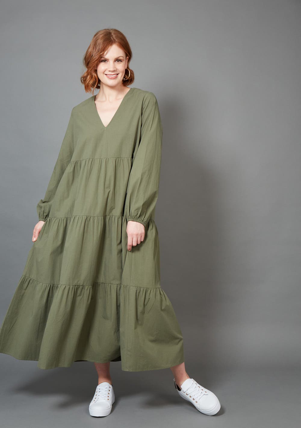 Are you looking for a dress to impress? Elevate your style or play it cool with the elegant Studio Tiered Maxi. Balloon sleeves and gathered tiers make this a versatile maxi dress. Pair it with your favourite boots or sneakers for a chic and playful look. Design features V-neck Balloon sleeves Gathered tiers Maxi length 100% cotton