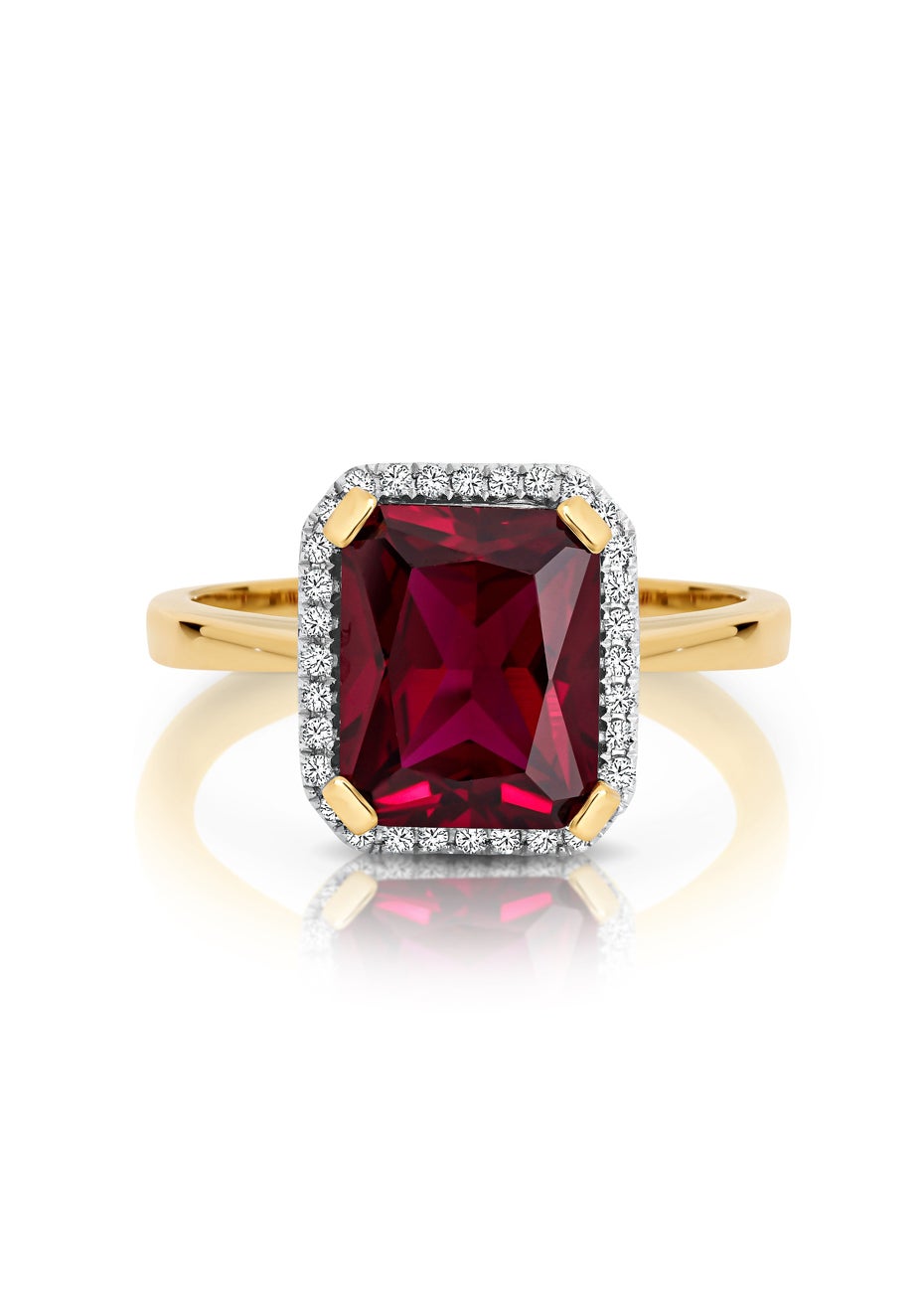 9ct Yellow Gold Synthetic Ruby & Diamond Dress Ring