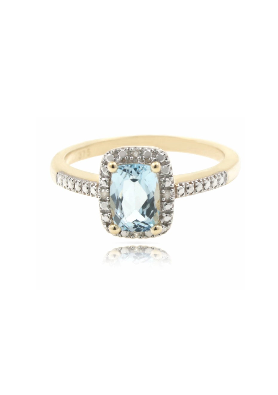 9ct Gold Sky Blue Topaz & Diamond Ring
