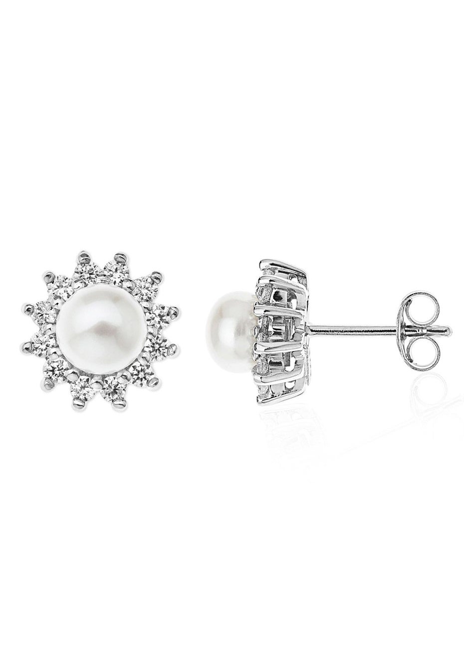 Sterling Silver 5.5mm Pearl & CZ Stud Earrings