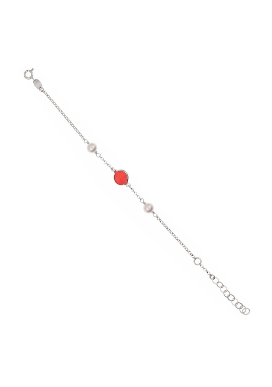 This bracelet is Italian made by the premium brand Davvero. The collection is hand crafted in Tuscany. Skilled master jewellery artisans have blended the beauty and sparkle of each crystal from Austria. With 35 years of manufacturing experience, the highest quality and attention to detail sets this collection apart from others. Davvero in Italian means "for real" Genuine peach coloured crystal from Austria, & 2x Faux pearls Sterling rhodium plated with extender, 17.5cm. 5m pearl, 8mm peach coloured Austrian crystal Made in Italy