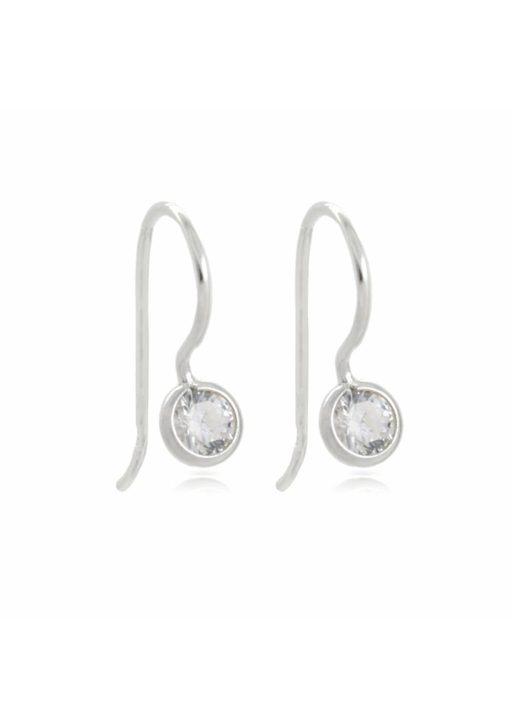 Sterling Silver CZ Rub Over Shepherd Hook Earrings