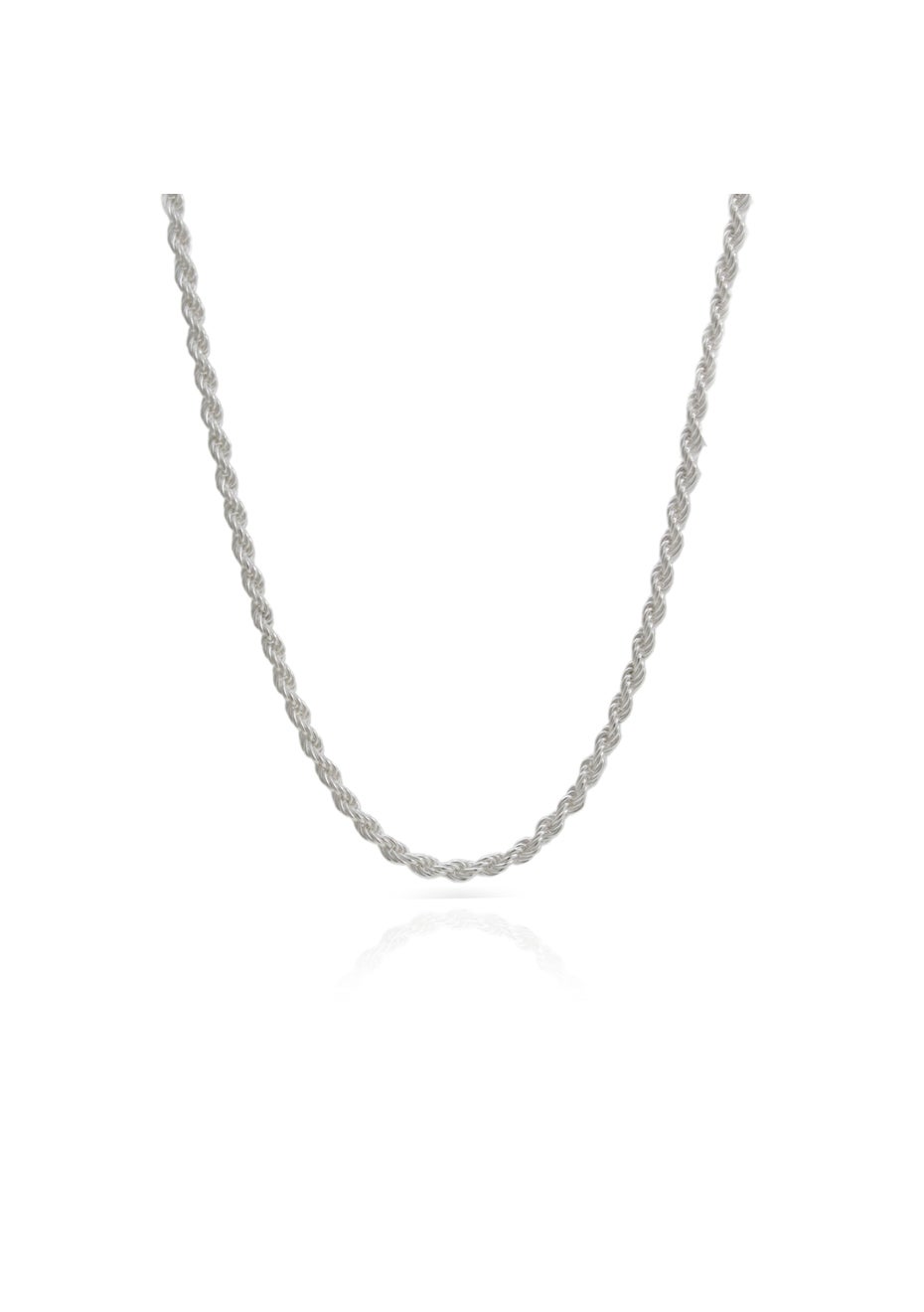 This solid rope chain is a standout piece. Great on its own, or put your favourite statement pendant with it for a gorgeous look. Details are as follows: Genuine Sterling Silver 45cm in Length, with Parrot Clasp Weighs 5.8gms