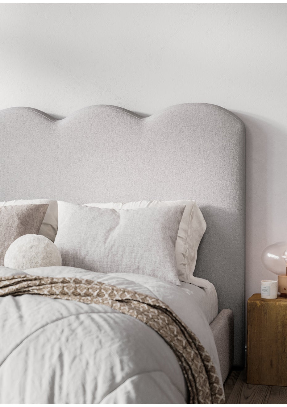 Our on trend teddy headboard has a curved silhouette with a note to mid-century design. The rounded shape and classic neutral tones create a calming, warm and comforting atmosphere, ideal for a zen-like bedroom retreat.