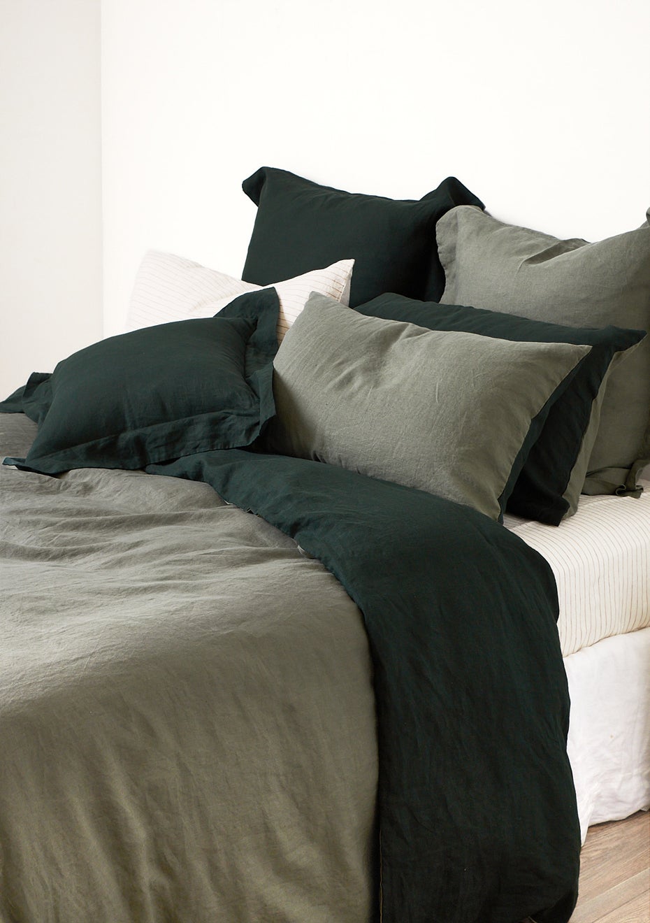George Collective - 100% Linen Reversible Duvet Cover Set - King - Pistachio/Hunter