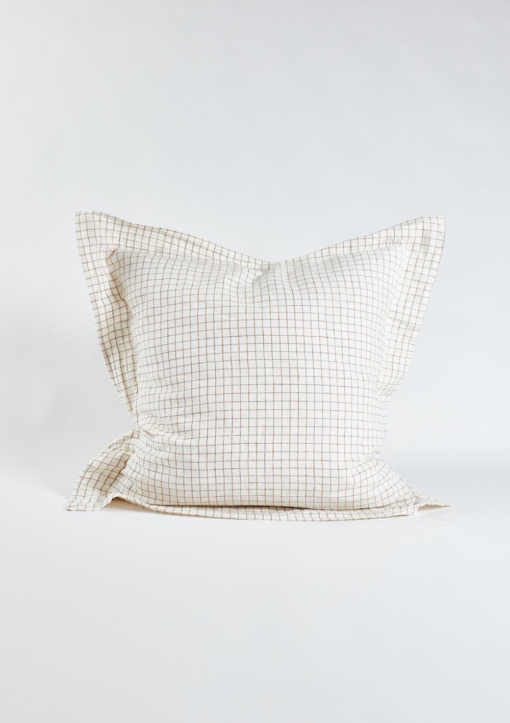 George Collective - 100% Linen European Pillowcase - Toffee Grid
