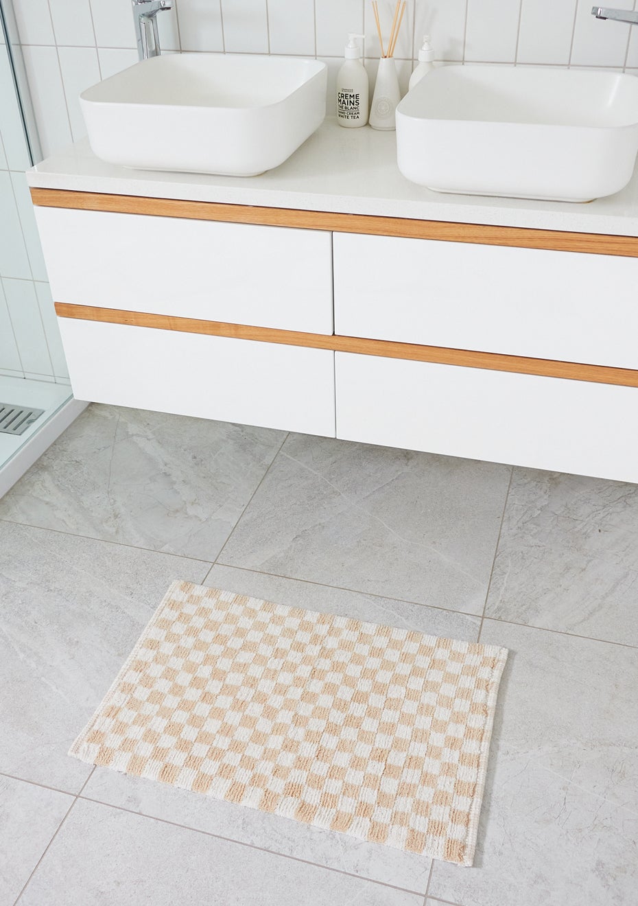 George Collective - Cotton Bath Mat - Checkerboard Sand