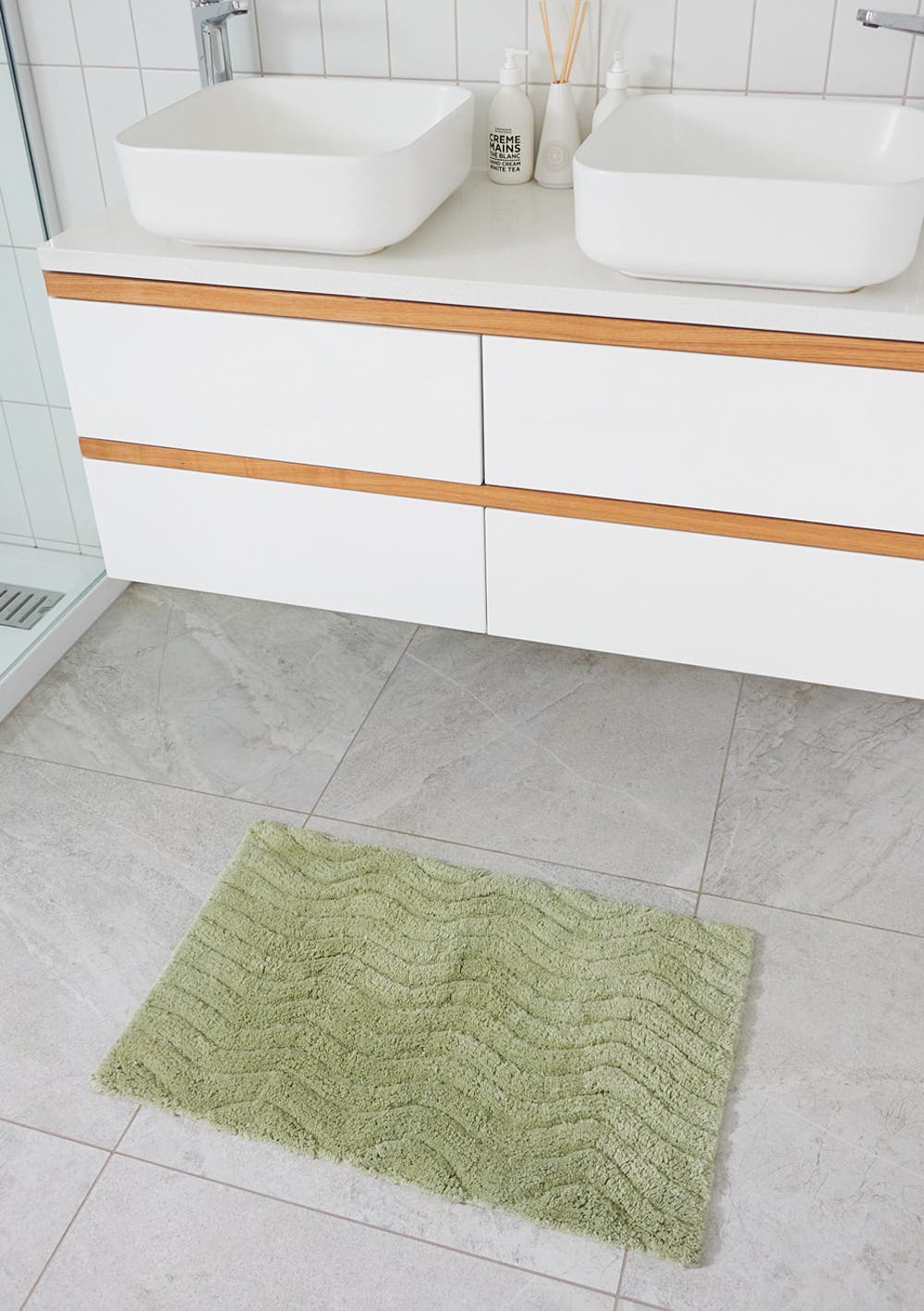 George Collective - Cotton Bath Mat - Wavy Texture - Green