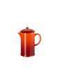 Le Creuset Coffee Press features a colourful stoneware exterior with a stainless steel plunger and a mesh press inside