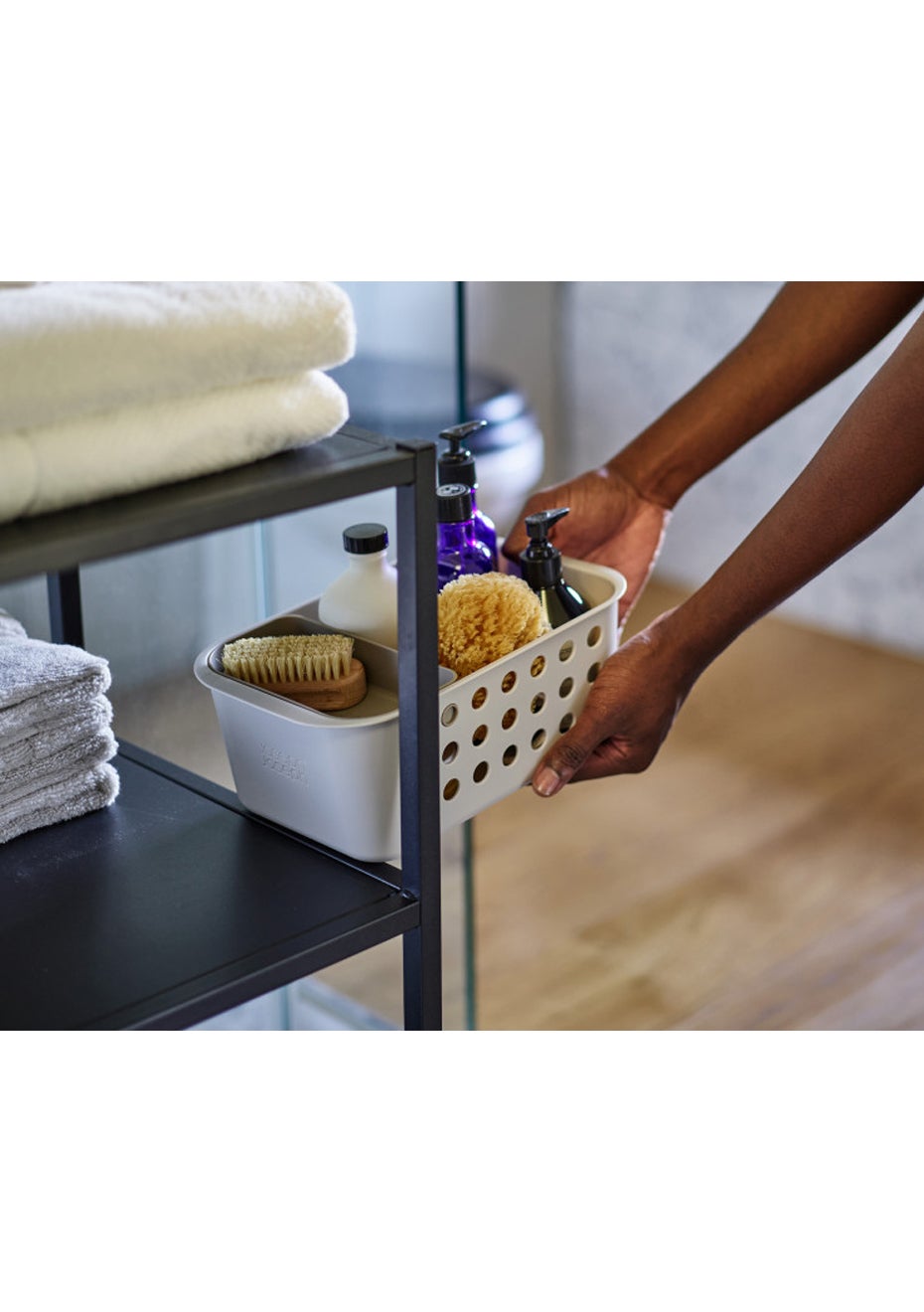 This small bathroom storage basket can store a variety of bathroom essentials and is ideal for organising on shelves or inside drawers.