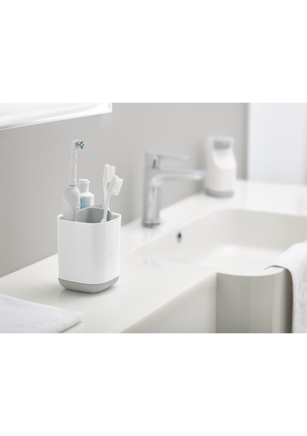 These toothbrush caddies have different sections for organising a variety of oral care items such as manual or electric toothbrushes and toothpaste tubes.