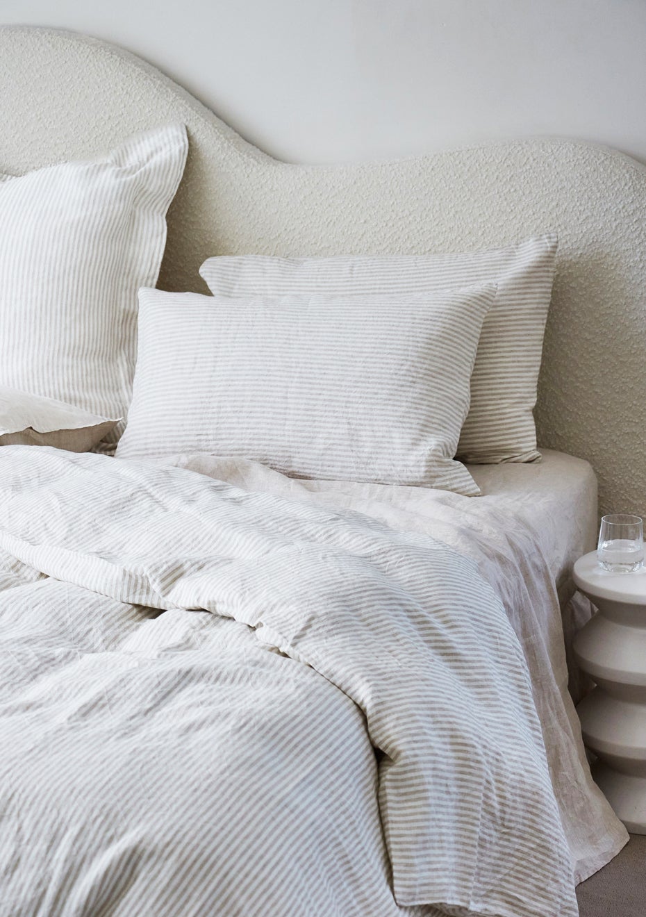 George Collective - 100% European Flax Linen Duvet Cover Set - Super King - Natural Stripe