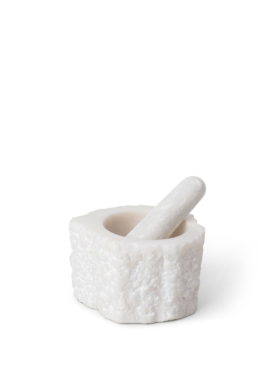 Like magnificent rocks found at a quarry, the bowl of the Petra Mortar is cut from one solid piece of quartz, which is known to be a durable material for kitchen utilities. Celebrating the beauty of its natural material, it has a raw, organic expression. Carved and polished into a mortar, it remains a design object, while the unique capability of the natural quartz speaks for itself. The Petra Mortar is complete with a pestle made of polished quartz. Use the Petra Mortar for herbs, spices and for making aromatic tapenades.