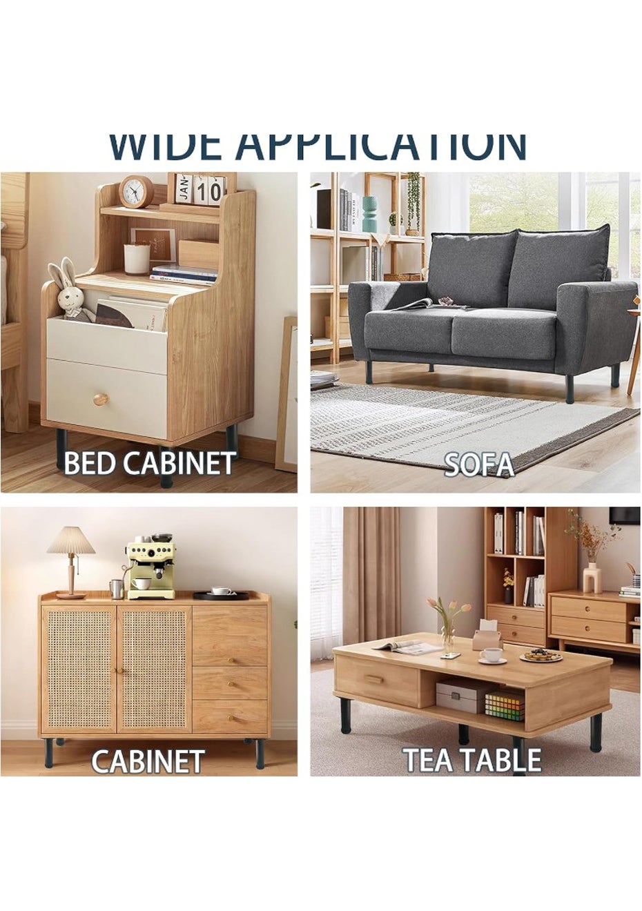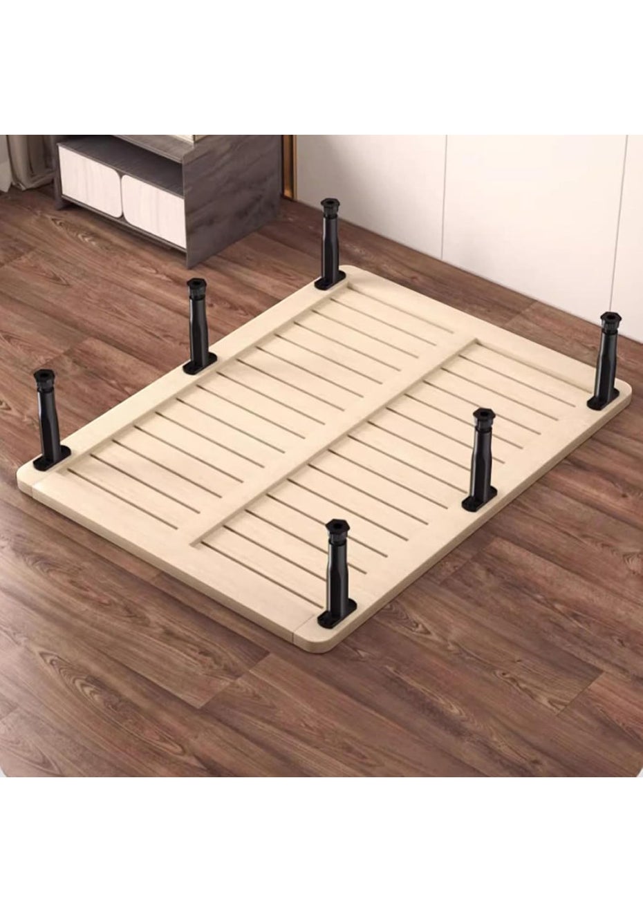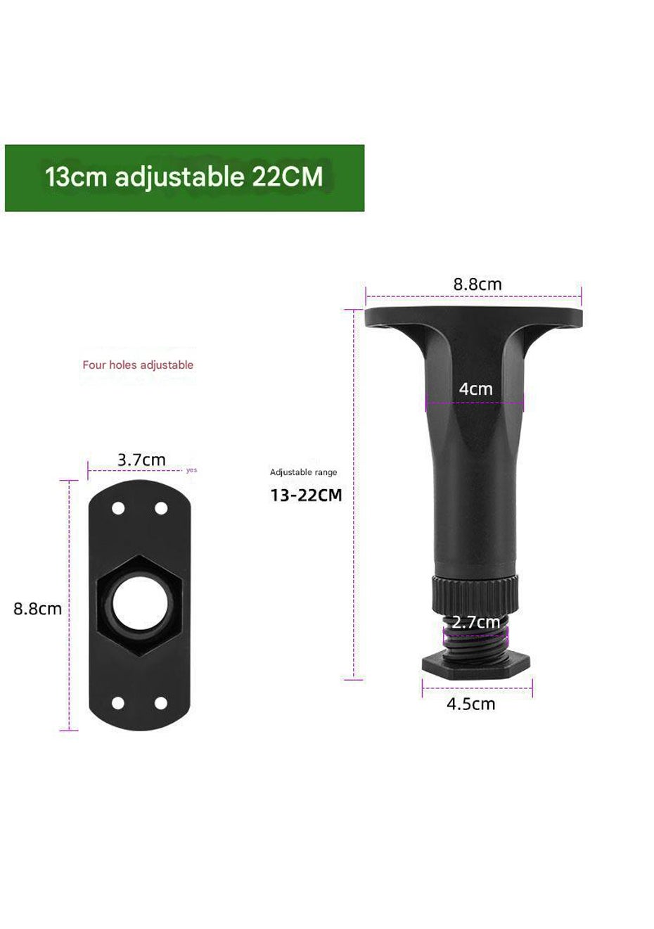 Each support leg adjusts from 13 cm to 22 cm, providing customizable support for various furniture such as beds, sofas, tables, and cabinets.