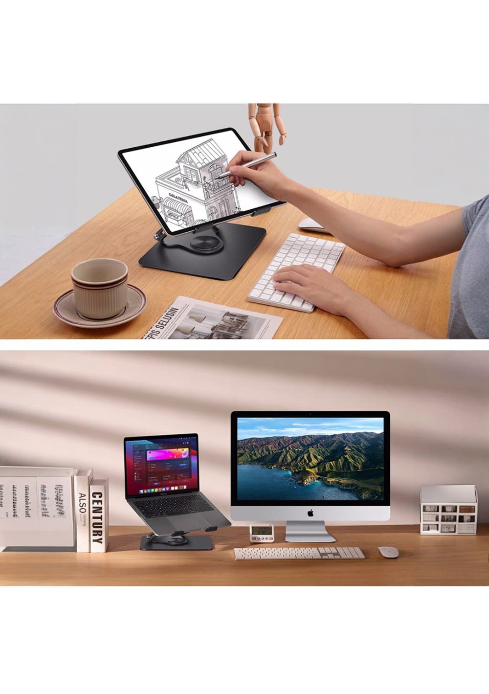 Adjustable Height Laptop Stand with 360°Rotating Base