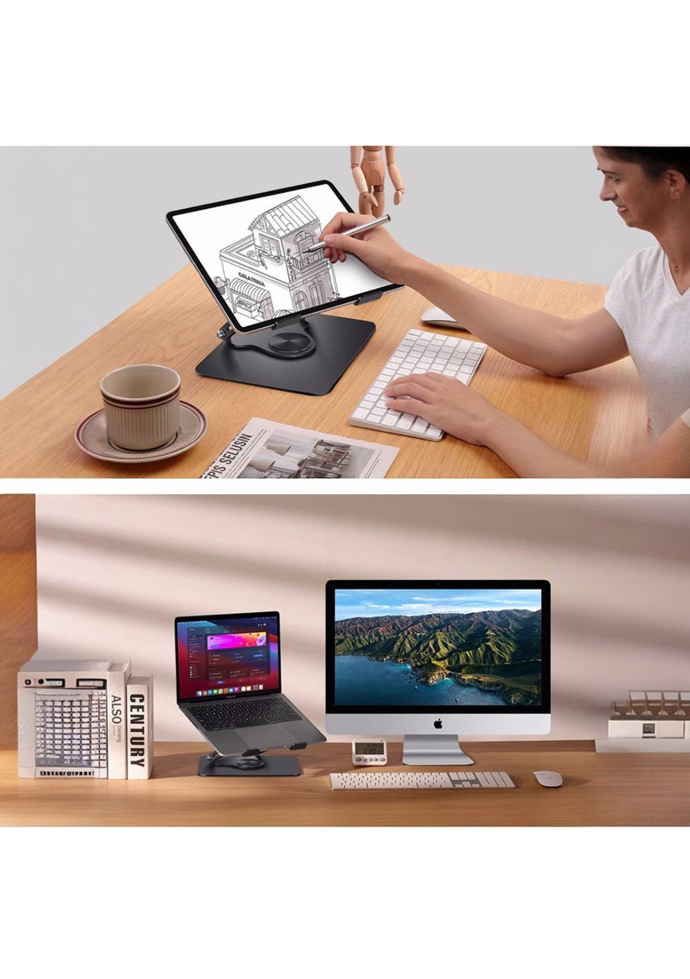360° rotating base for easy adjustments and collaboration.