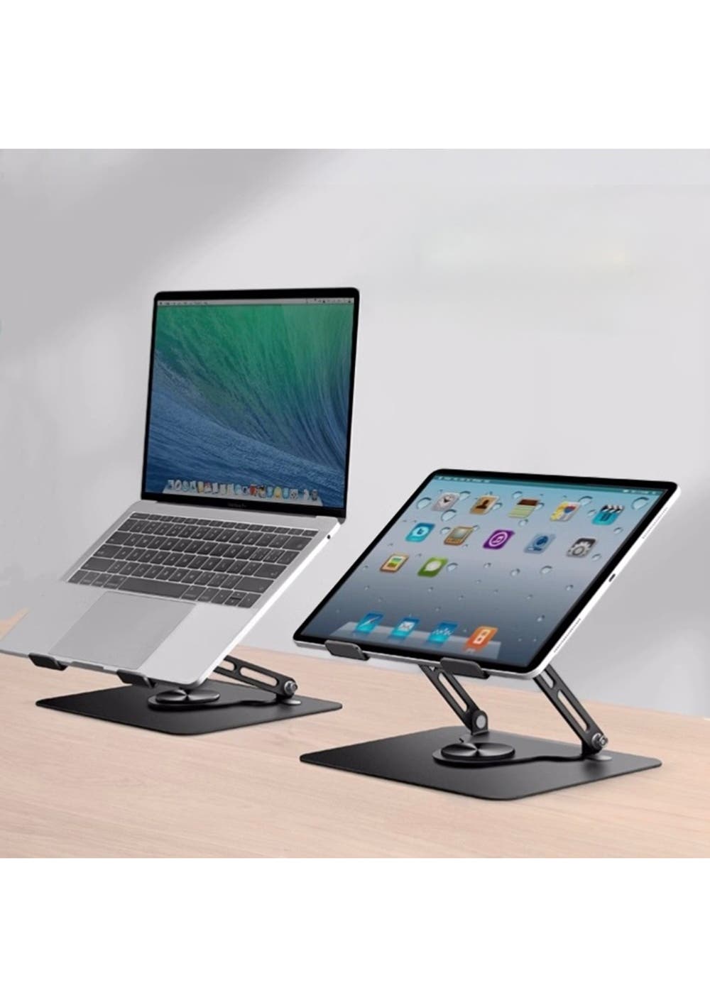 The Adjustable Height Laptop Stand with a 360° Rotating Base is a versatile and practical solution for your workspace. Featuring a smooth rotating base, it allows effortless screen sharing and adjustments to find the ideal viewing angle. Its adjustable height and tilt ensure a customized setup, supporting laptops, tablets, or other devices 。