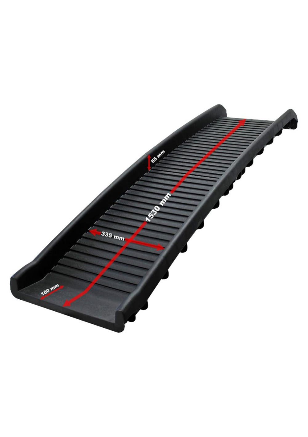 Portable Folding Pet Ramp -2 Folded Material: PP (Polypropylene) Product Dimensions (LWH): 153x33.5x7 cm Package Dimensions (LWH): 42x82x21 cm Weight: 5 kg Key Features: Sturdy & Durable Construction – Made from high-quality plastic, this folding pet ramp can support up to 75 kg, making it suitable for larger and heavier dogs. It provides a reliable and stable surface for your pet to safely access vehicles, beds, or other elevated areas. Easy to Use & Store – The 2-fold design allows for quick setup and easy storage. Whether at home or on the go, this ramp is perfect for indoor and outdoor use, folding compactly for convenient transport and storage. Non-Slip Surface for Safety – Featuring a waterproof, sandpaper-like, non-slip surface and raised side rails, the ramp offers a secure grip, ensuring your dog’s safety during use. The ramp is easy to clean and includes a safety latch to lock it securely when folded. Space-Saving Foldable Design – When folded in half, the ramp takes up minimal storage space, making it easy to transport. It’s lightweight yet sturdy, ensuring maximum portability and convenience while traveling. Vehicle Friendly Installation – The ramp is designed to fit seamlessly onto your vehicle, helping your dog enter the car or SUV with ease. Rubber coatings protect your car from scratches, making this ramp an ideal accessory for road trips. Package Includes: 1x Portable Folding Pet Ramp - 2 Folded