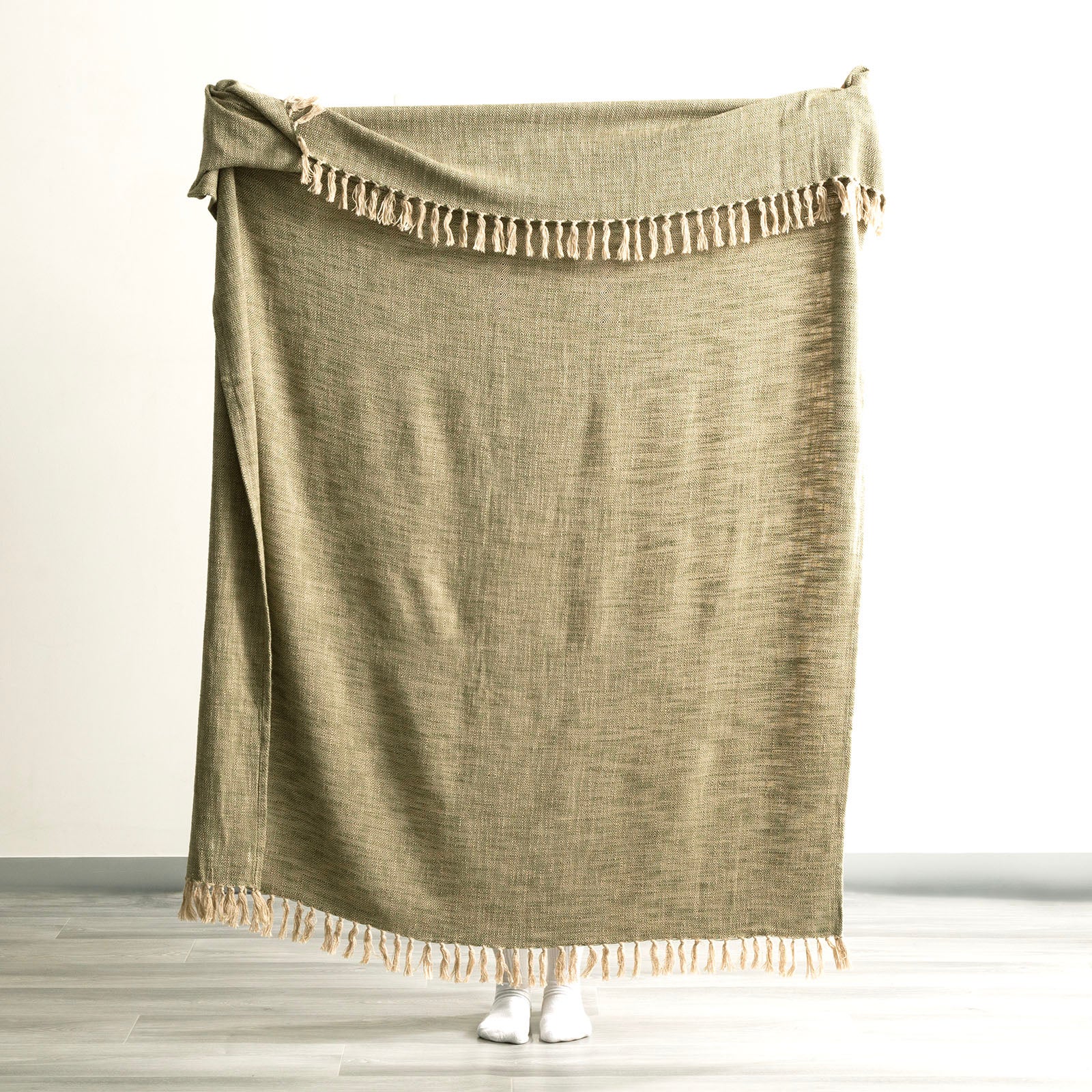 Renee Taylor Surrey Chevron Yarn-Dyed Throw 130 x 170 cms Olive