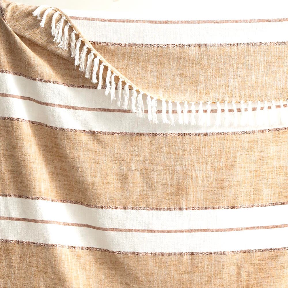 Renee Taylor Modena Stripe Stone Washed Yarn-Dyed Throw 130 x 170 cms Tan
