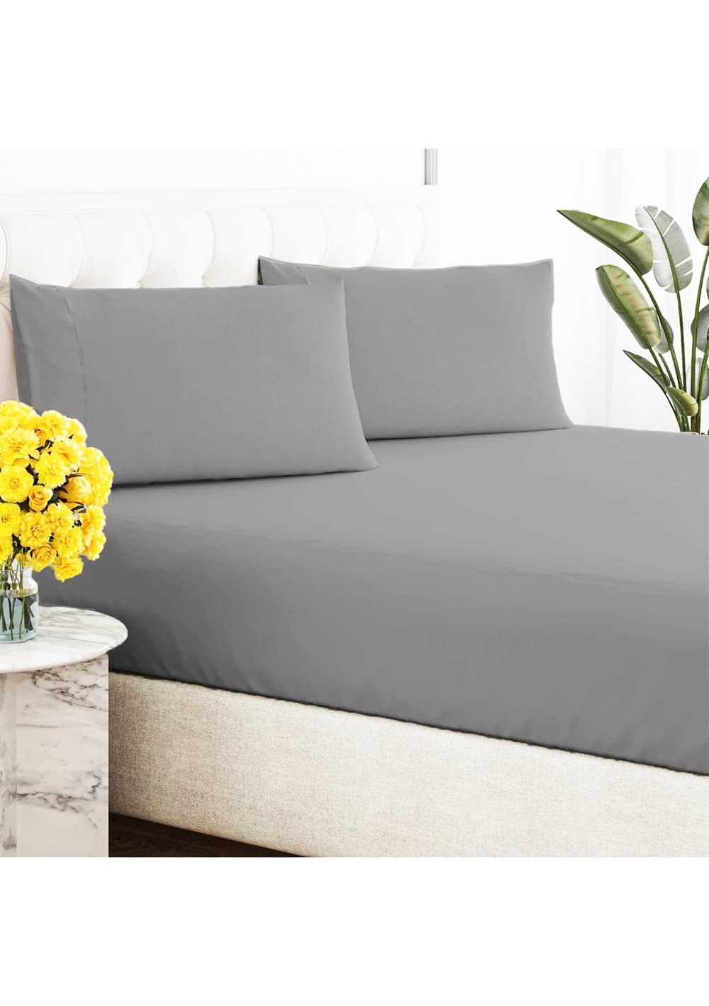 Renee Taylor 300 Thread Count 100% Organic Cotton Fitted and Pillow Case Set Double Steel Grey