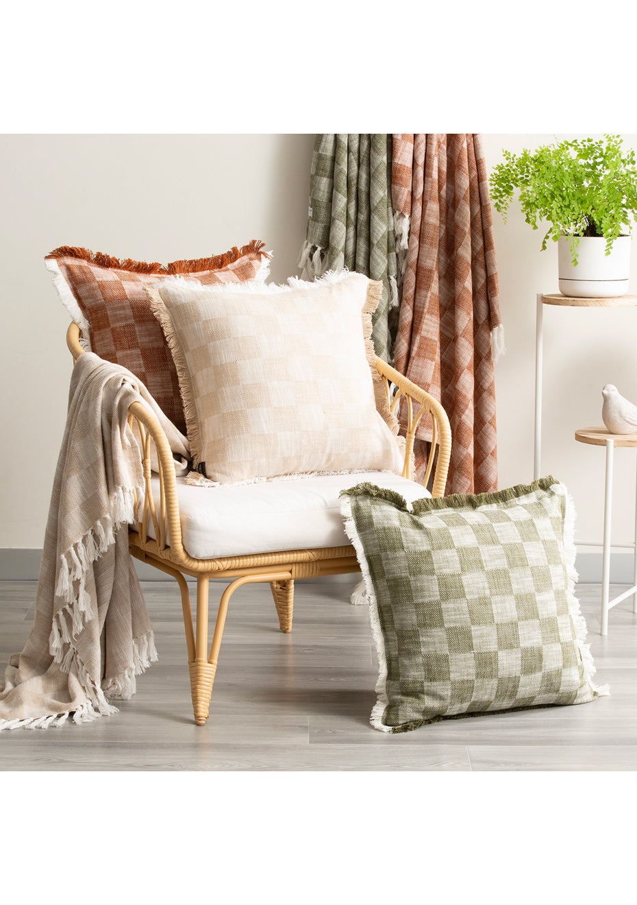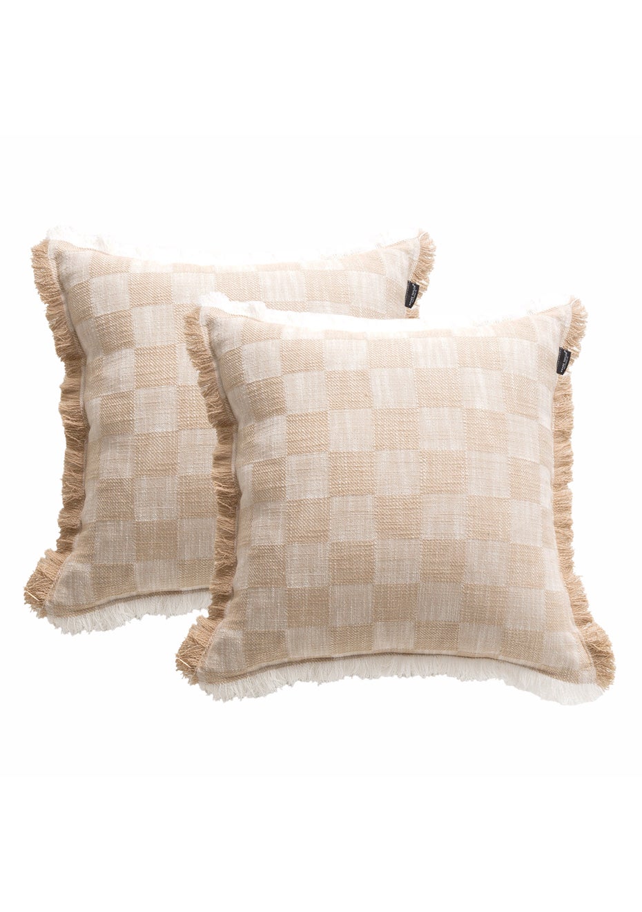 Renee Taylor Noah Checkered Stone washed Yarn-dyed Cushion Twin Pack 50 x 50 Cms Feathr Filled Nude