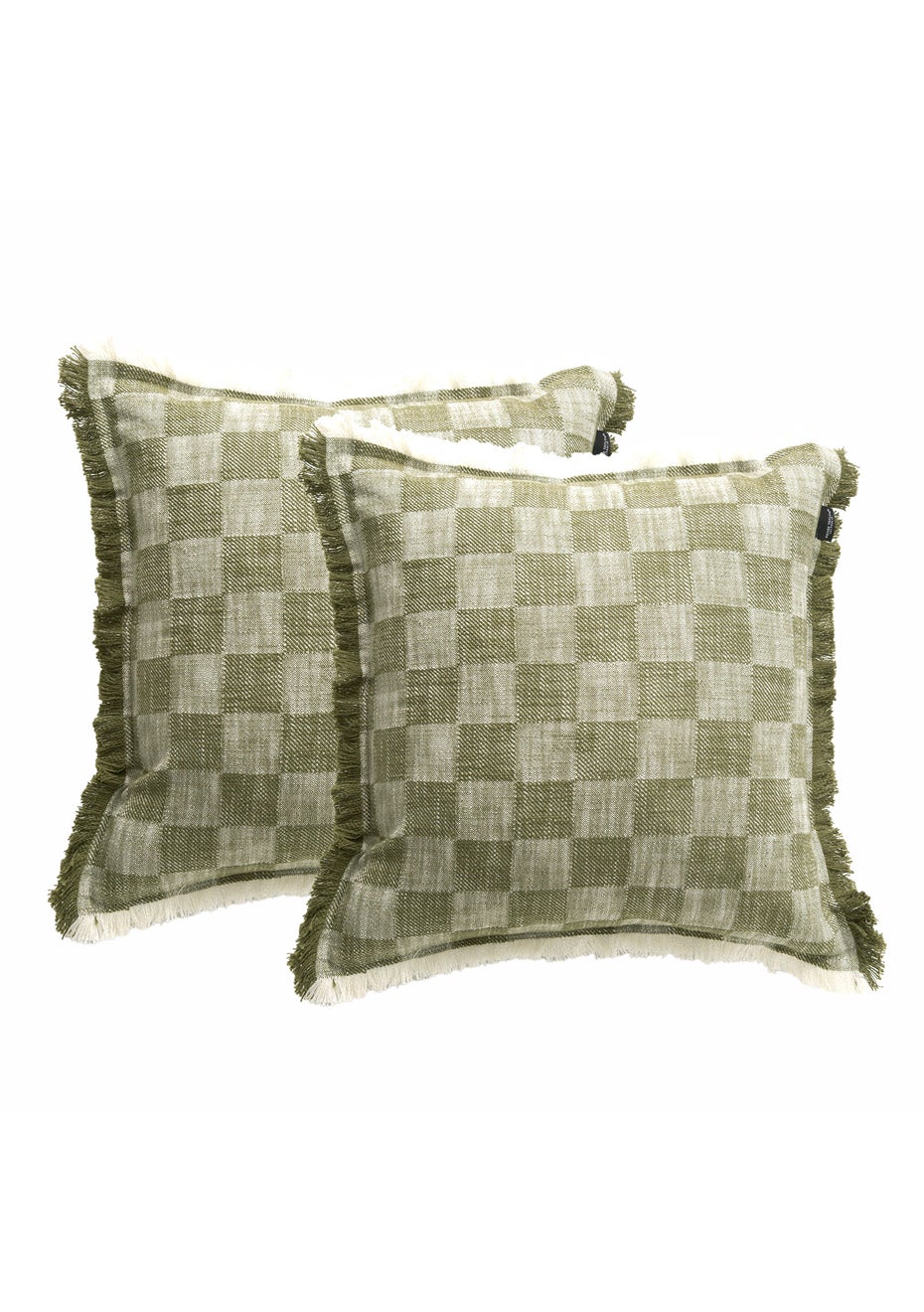 Renee Taylor Noah Checkered Stone washed Yarn-dyed Cushion Twin Pack 50 x 50 Cms Feathr Filled Jade