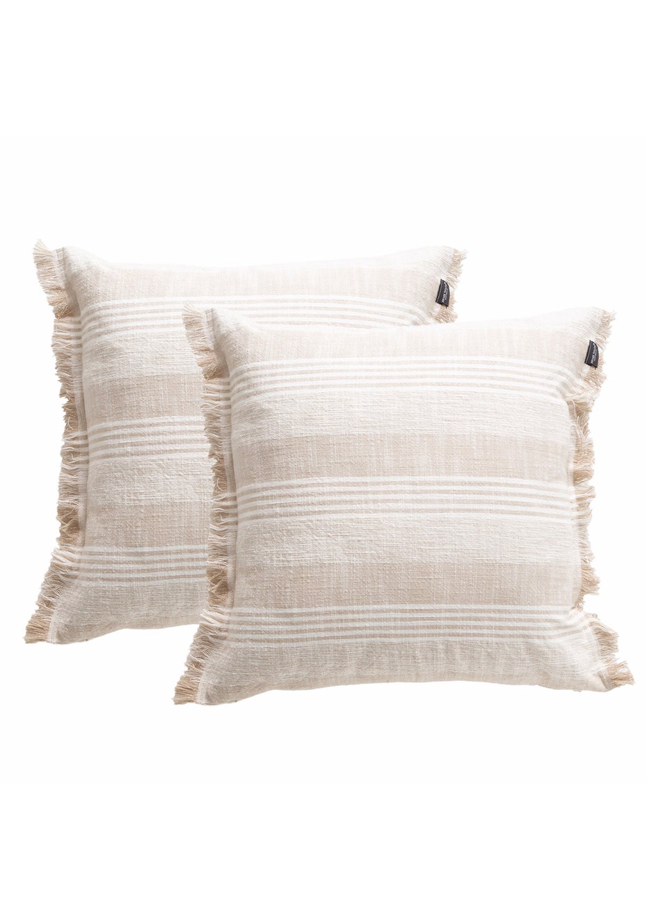 Renee Taylor Kent Stripe Stone washed Yarn-dyed Cushion Twin Pack 50 x 50 Cms Feathr Filled Natural