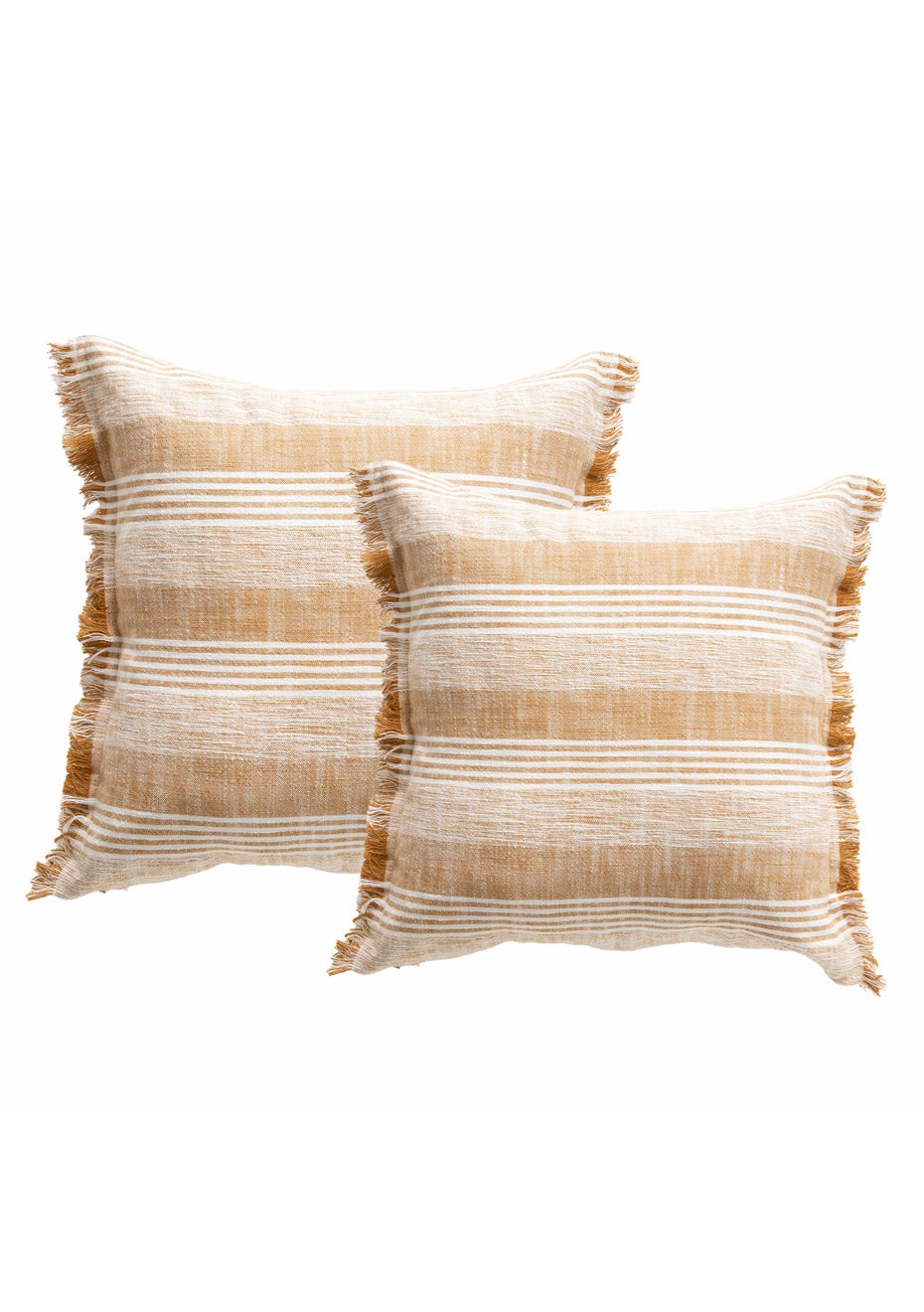 Renee Taylor Kent Stripe Stone washed Yarn-dyed Cushion Twin Pack 50 x 50 Cms Feathr Filled Gold