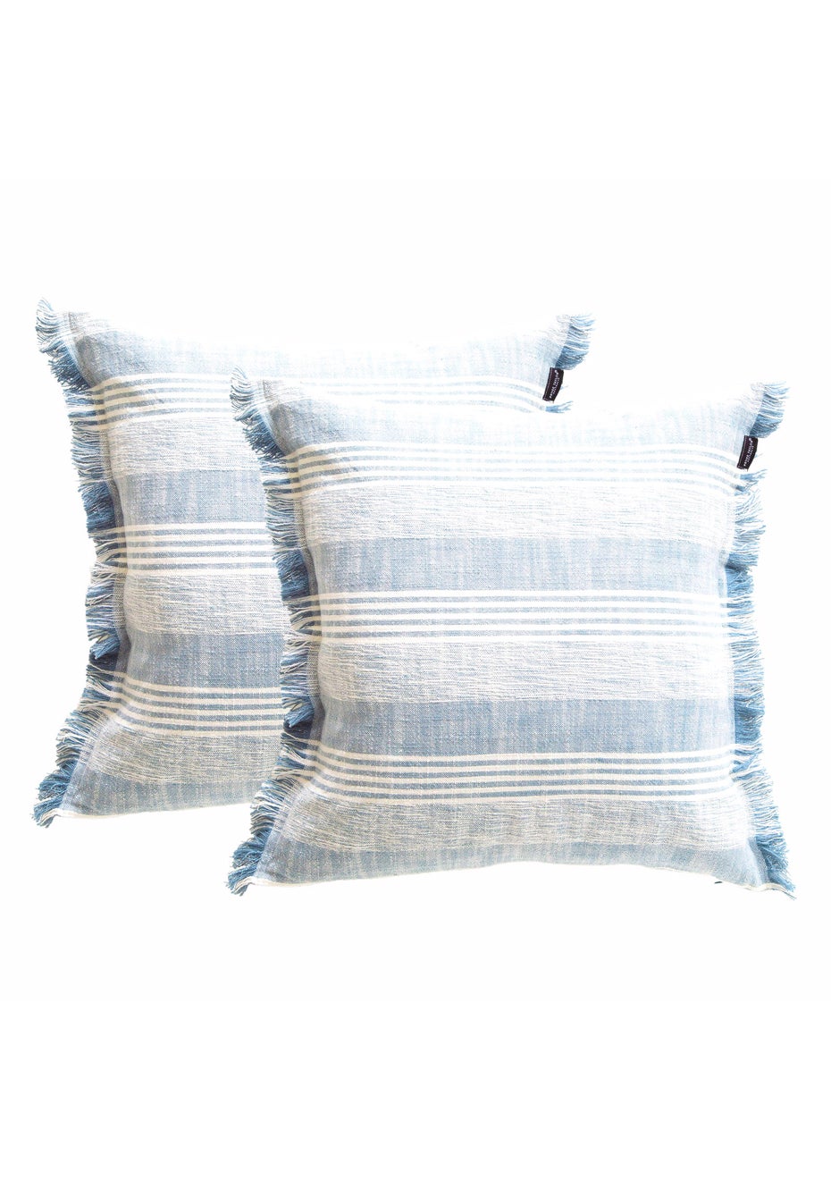 Renee Taylor Kent Stripe Stone washed Yarn-dyed Cushion Twin Pack 50 x 50 Cms Feathr Filled Ocean