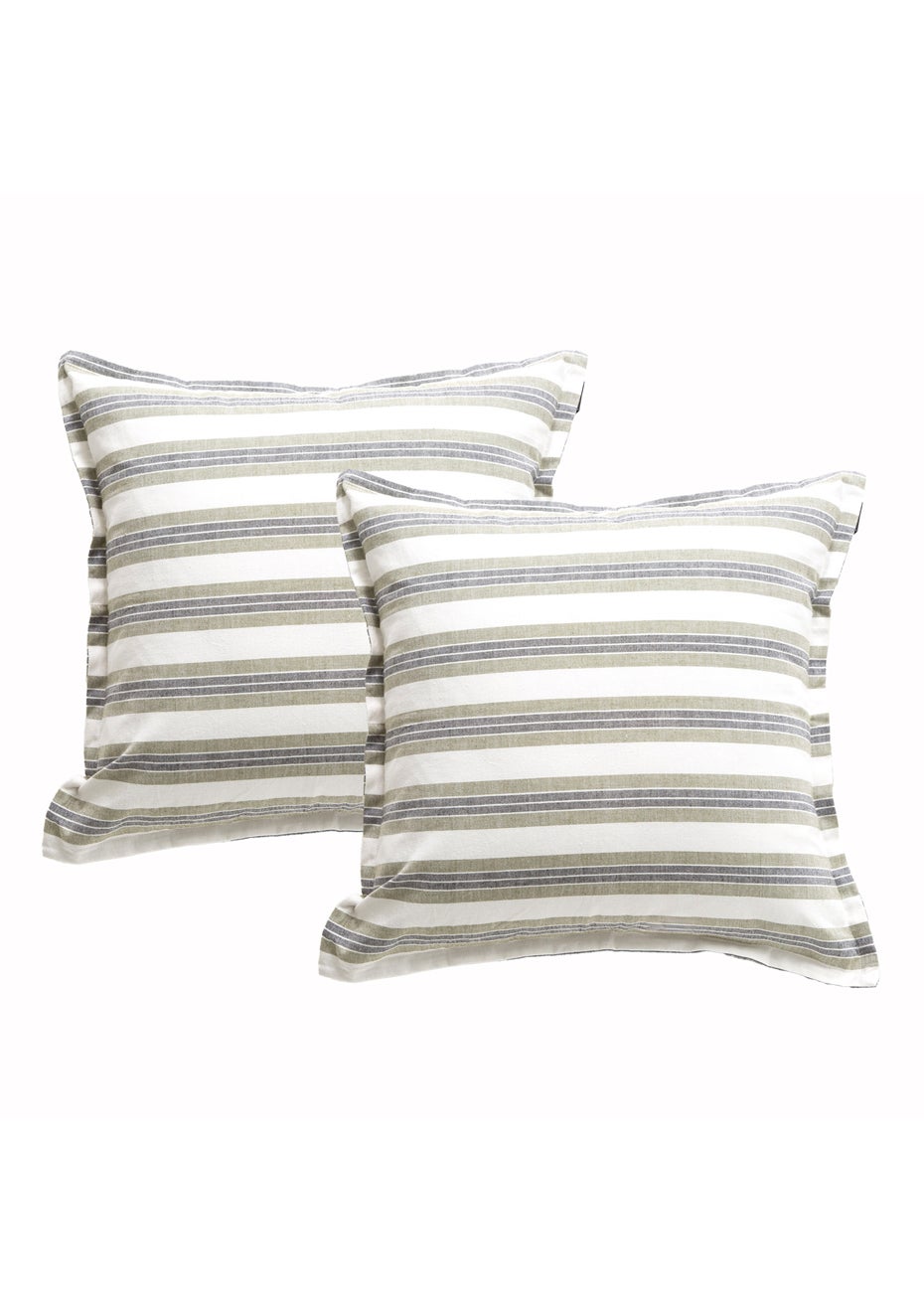 Renee Taylor Marina Stripe Stone washed Yarn-dyed Cushion Twin Pack 50 x 50 Cms Feathr Filled Moss