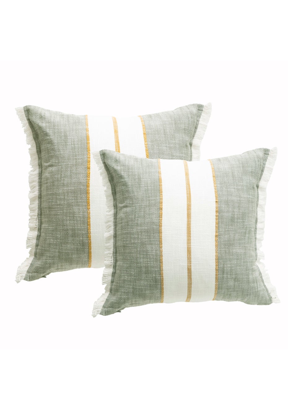 Renee Taylor Darcy Stripe Stone washed Yarn-dyed Cushion Twin Pack 50 x 50 Cms Feathr Filled Sage