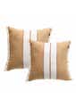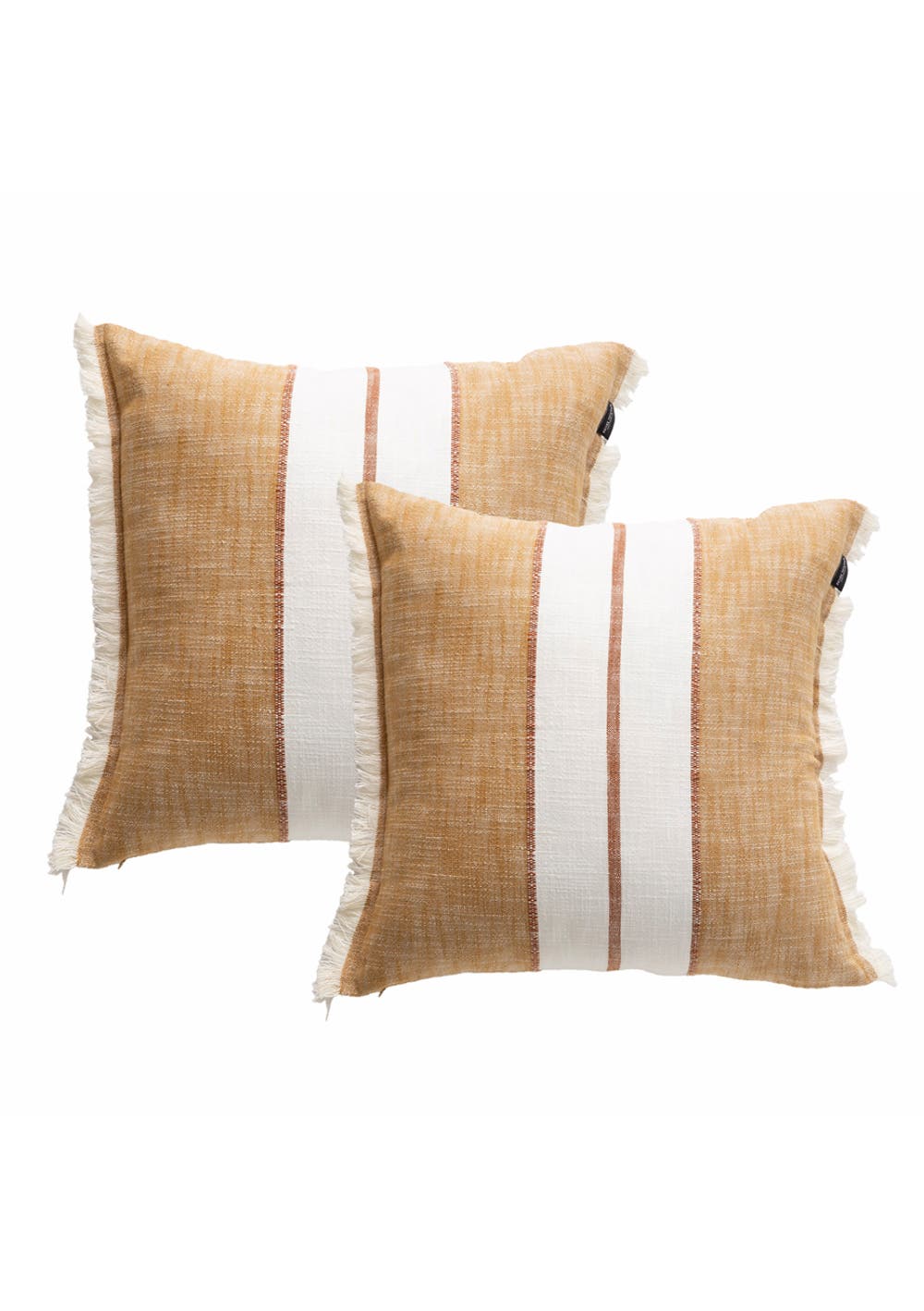 Renee Taylor Darcy Stripe Stone washed Yarn-dyed Cushion Twin Pack 50 x 50 Cms Feathr Filled Tan