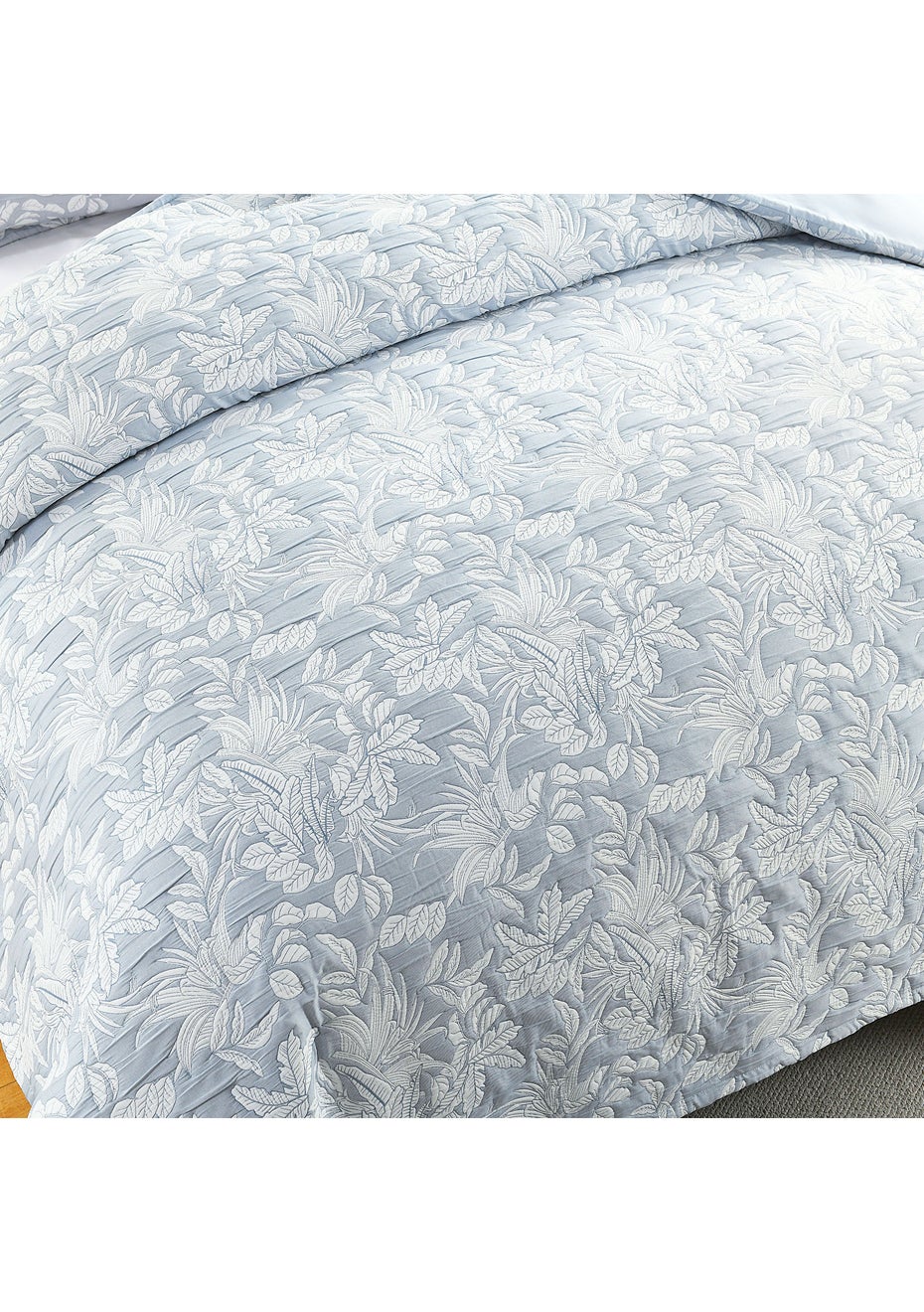 Renee Taylor Westley Jacquard Quilt Cover Set The Westley quilt cover is crafted with a textured cotton matelassé weave that exudes elegance & sophistication. Its unique chambray effect creates a subtle blend of colours & reminiscent of serene coastal landscapes. Perfect for those who appreciate classic styling, Westley quilt cover offers a versatile look that complements a wide range of interior themes, from coastal to traditional aesthetics. Pair them with European pillowcases for the extra edge. Features: -Crafted with a textured cotton matelassé weave. -Chambray effect with serene coastal landscapes pattern -Finished with hidden button closure & edges. -It's also OEKO TEX certified which means no nasty chemicals. -Matching European Pillowcase available (sold separately) Sizes/ Set includes: -Queen - 1 x quilt cover - 210 x 210 cms / 2 x pillowcases - 48 x 74 + 5 cms flange -King - 1 x quilt cover - 245 x 210 cms / 2 x pillowcases - 48 x 74 + 5 cms flange -Super King - 1 x quilt cover - 270 x 240 cms / 2 x pillowcases - 48 x 74 + 5 cms flange -European P/Case - 65 x 65 Cms + 5 cms flange. Sold Separately. Product images are only visual representations, and while care is taken to ensure accuracy, colours may vary due to monitor variations. Wash Care: Front: Cotton /Polyester Reverse: Cotton Wash separately before first use. Cold gentle machine wash. Do not use hot water. Wash with similar colours. Do not soak. Do not bleach. Rinse well. Normal spin. May be tumble dried cool or line dry in shade. Warm iron if required. Do not dry clean (X).