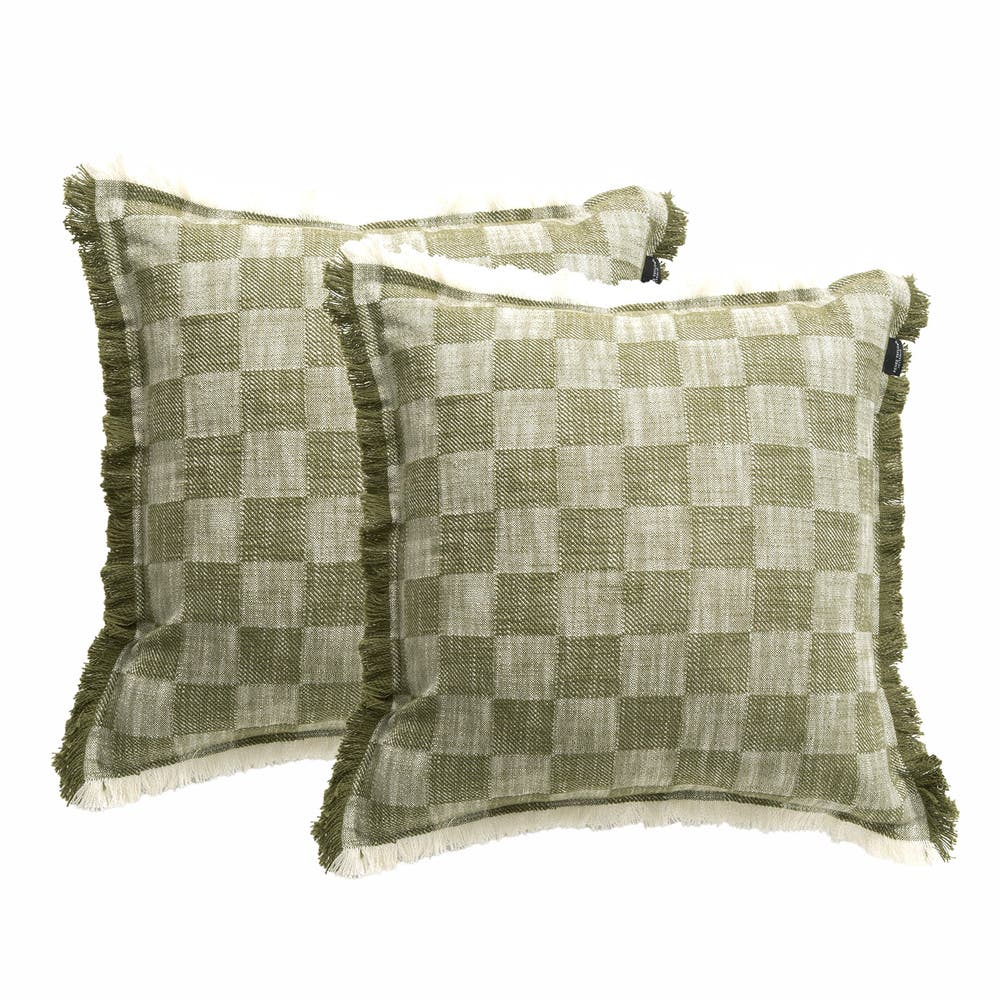 Renee Taylor Noah Checkered Stone washed Yarn-dyed Cushion Twin Pack 50 x 50 Cms Polyester Filled Jade