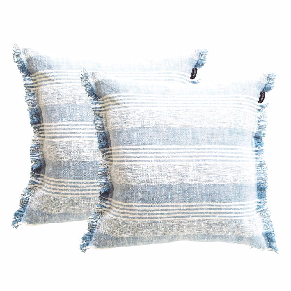 Renee Taylor Kent Stripe Stone washed Yarn-dyed Cushion Twin Pack 50 x 50 Cms Polyester Filled Ocean