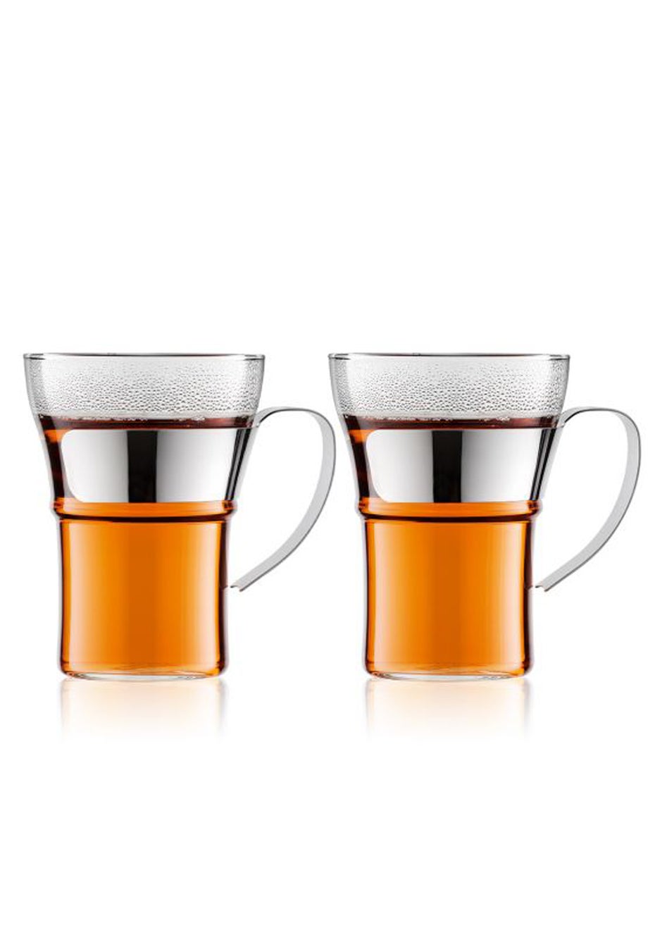 Bodum - 2 Pcs Coffee Glass With Steel Handle Large 0.35 L 12 Oz - Glass