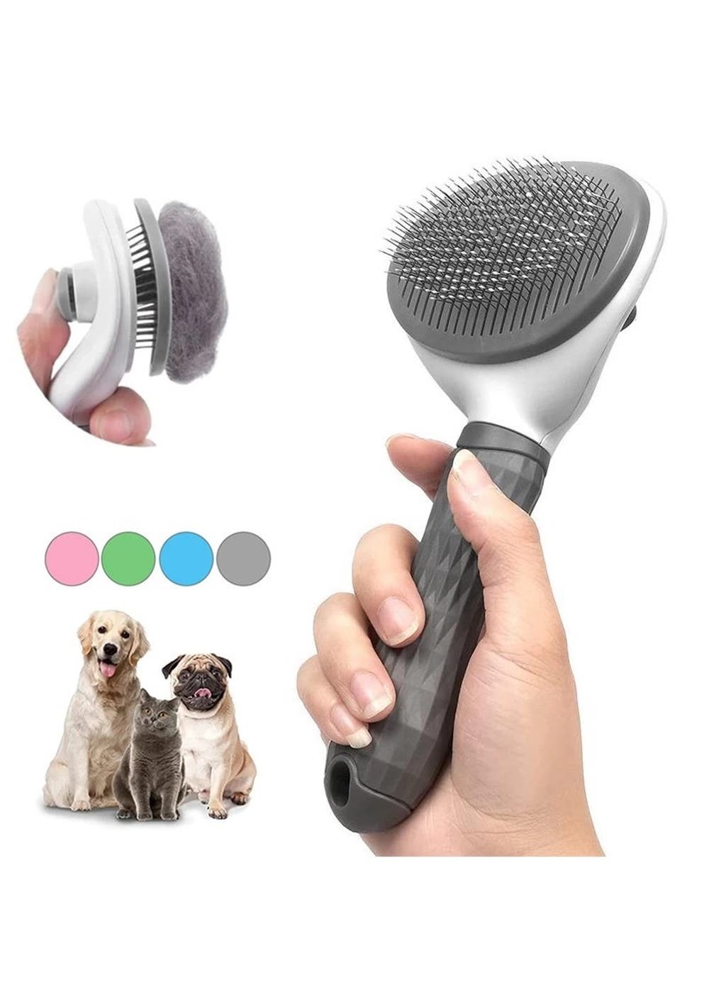 Self Cleaning Pet Hair Remover Brush Pets Dematting Comb - Grey